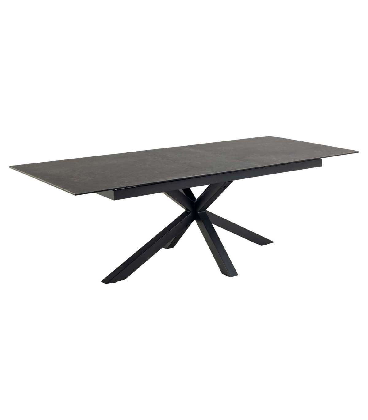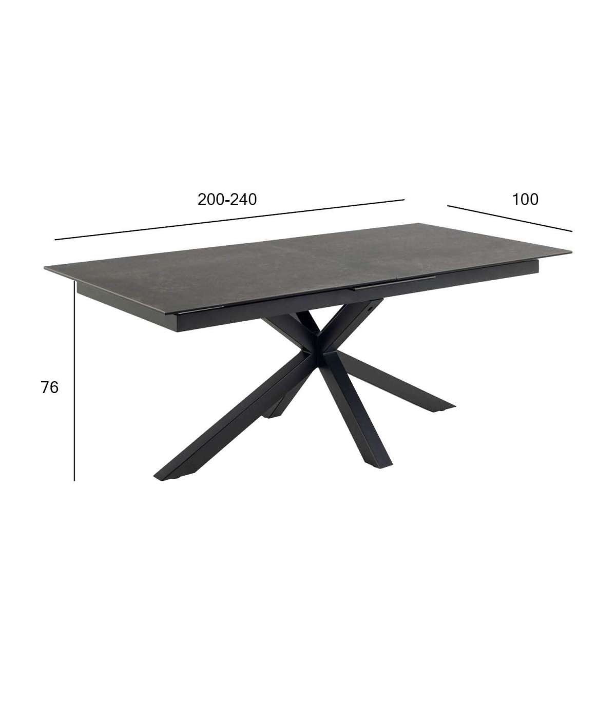 Kaasaegne ja praktiline söögilaud. Kuuma- ja kriimustuskindel must keraamiline lauaplaat. Laua juurde kuulub musta värvi keraamiline pikendusplaat. Panipaik pikendusplaadi jaoks, kui seda ei kasutata. Must pulbervärvitud metallist ristalus. Pikendatuna mahutab mugavalt 10 inimest. Toote mõõdud on 200/240x100xH76cm.
