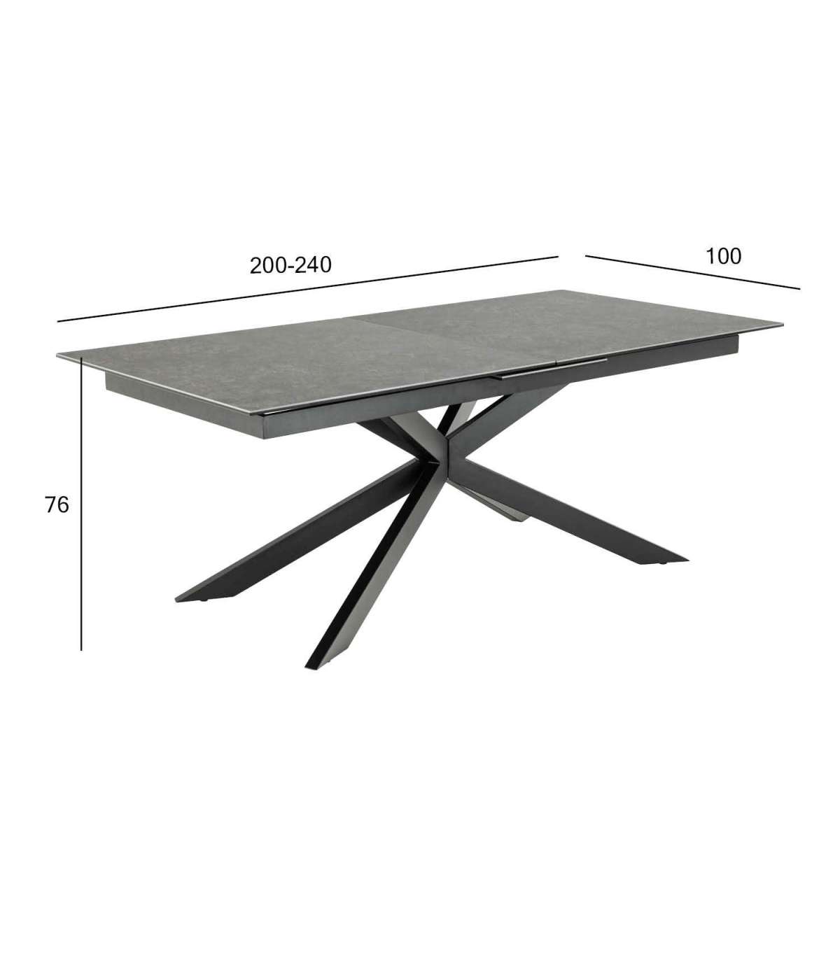 Must keraamiline lauaplaat annab lauale tööstusliku ilme. Pind on kuuma- ja kriimustuskindel ja nõuab vähe hooldust. Lauda saab tänu sünkroonpikendusele kergesti pikendada. Lihtsalt tõmmake õrnalt laua otsast ja keskele ilmub pikendusplaat. Must pulbervärvitud ristalus. Pikendatuna mahutab mugavalt 10 inimest. Toote mõõdud on 200/240x100xH76cm.