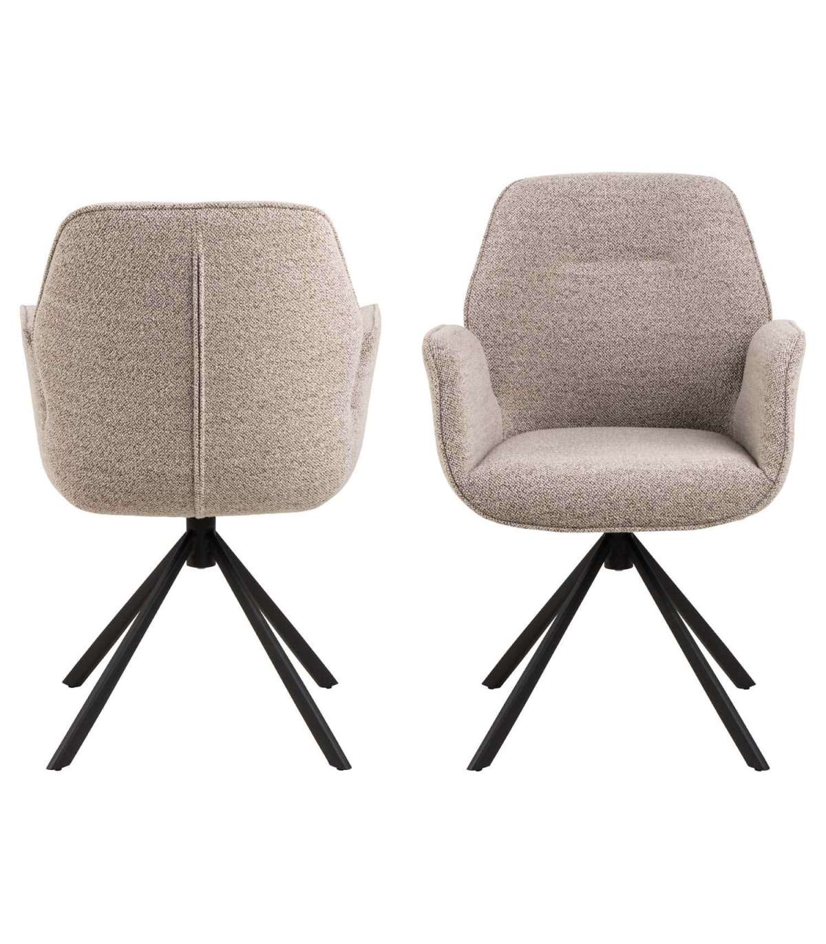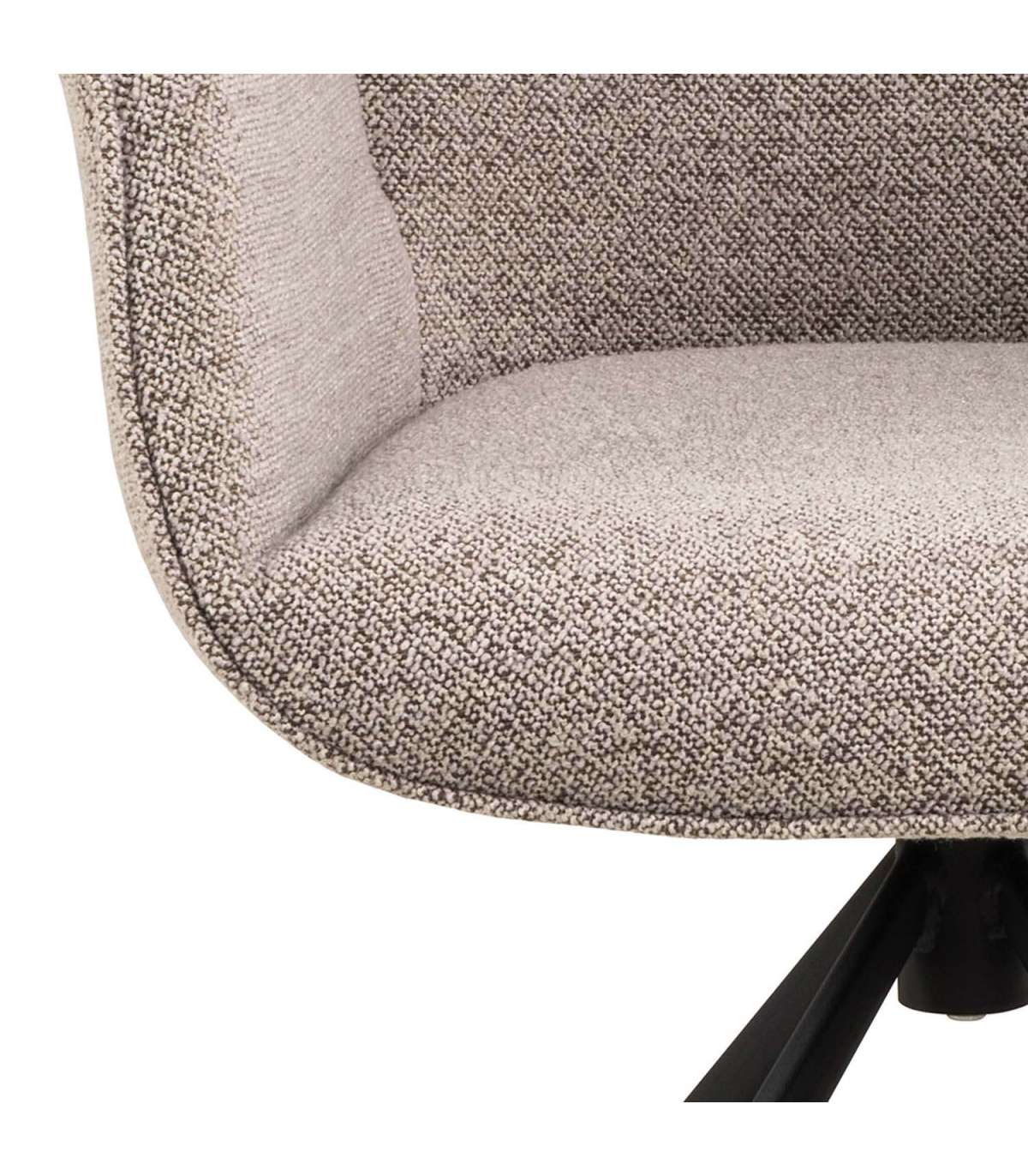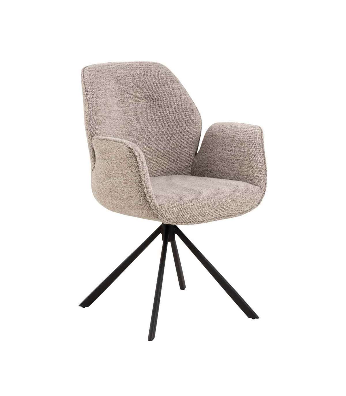 Moodne elegantne söögitool. Polsterdatud bukleekangaga. Must pulbervärvitud metallist alus, pöörlev. Lõige käe- ja seljatoe vahel. Toote mõõdud on 60,5x58,5xH91cm.