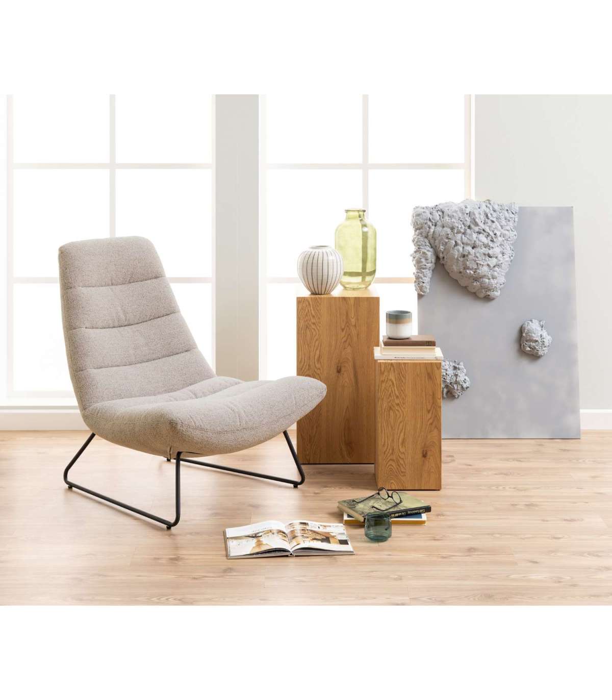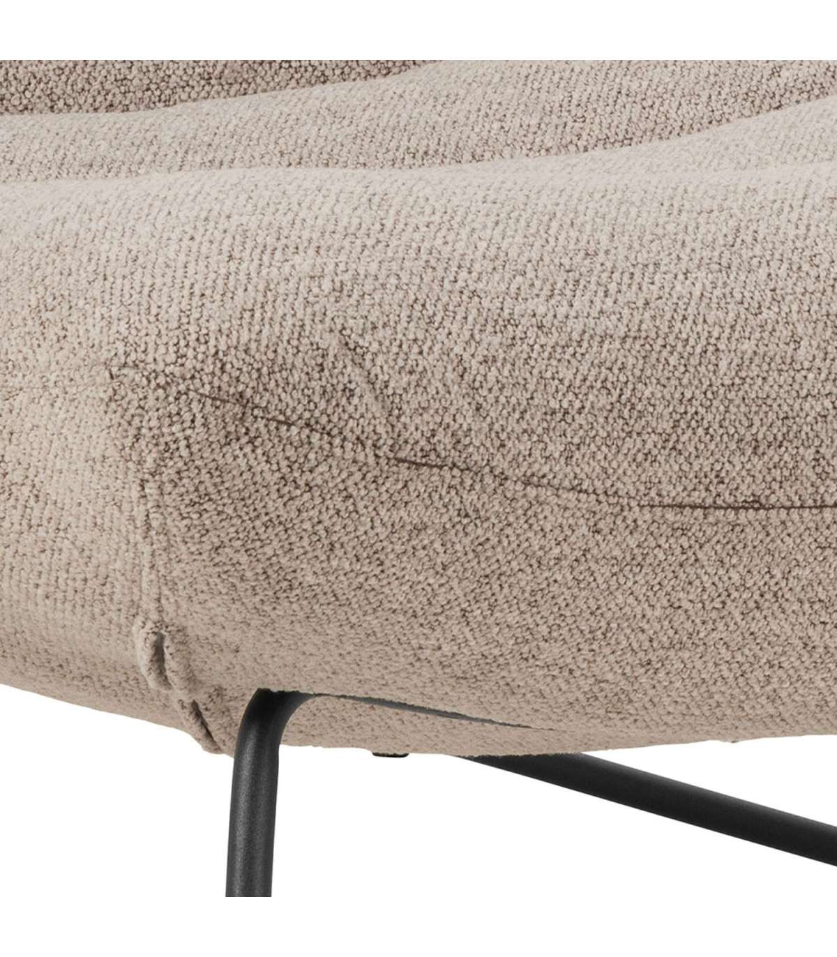 Tool pakub ülimat mugavust. Bukleekangas annab toolile modernse välimuse, metallist alus lisab aga tööstusliku ilme. Kangal on horisontaalsed õmblused. Alus: mattmust pulbervärvitud metall. Mõõdud on 82,5x93xH97cm. HOOLDUS: Hooldus piirdub tolmuimejaga ja plekieemaldamisega. Plekkide eemaldamisel tuleb olla ettevaatlik. Katsetage plekieemaldajaid esmalt vähem nähtaval alal ja tegutsege vastavalt tulemusele. Ärge kunagi kasutage lahusteid. Ärge asetage mööblit otsese päikesevalguse kätte. Alus: Kasutage igapäevaseks puhastamiseks seebiveest kuivaks väänatud lappi. Rooste vältimiseks pühkige pind kuivaks. Ärge hõõruge pinda kõvade esemetega.