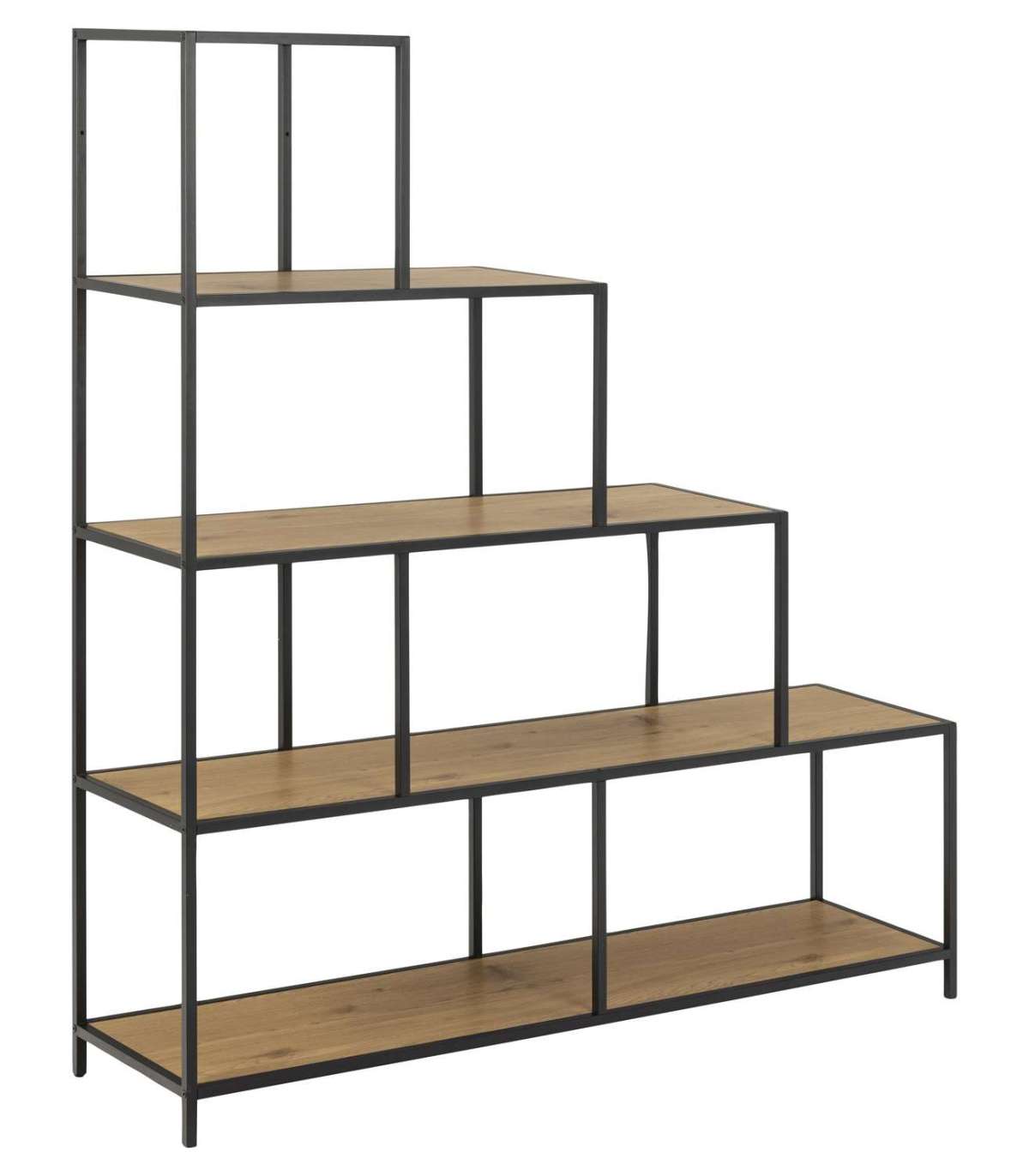 Maitsekas riiul, mis muudab ruumi stiilsemaks. Riiulil on asümmeetriline disain ja astmeline kuju. Raam ja alus: mattmust pulbervärvitud metall. Mõõdud on 135x35xH150cm. HOOLDUS: Kasutage seebiveest kuivaks väänatud lappi ja pühkige pind kuivaks. Vältige küürimispulbri või nailonkäsnade kasutamist, kuna need pleegitavad või kriimustavad materjali. Ärge hõõruge pinda kõvade esemetega.
