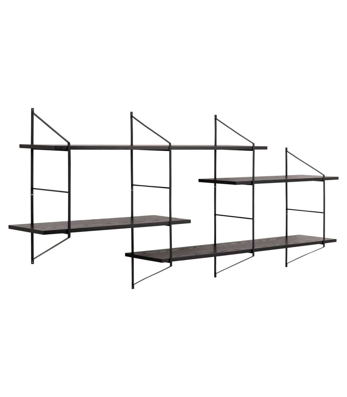 Moodne kerge ilmega seinariiul. Inspireeritud tööstusliku ja japandi stiili segust. Asümmeetriline detail lisab visuaalselt huvitava nüansi. 4 reguleeritavat riiulit elegantse musta värvi välimusega. Peen must pulbervärvitud metallraam. FSC™ sertifikaat. Toote mõõdud on 191x25,5xH79cm.