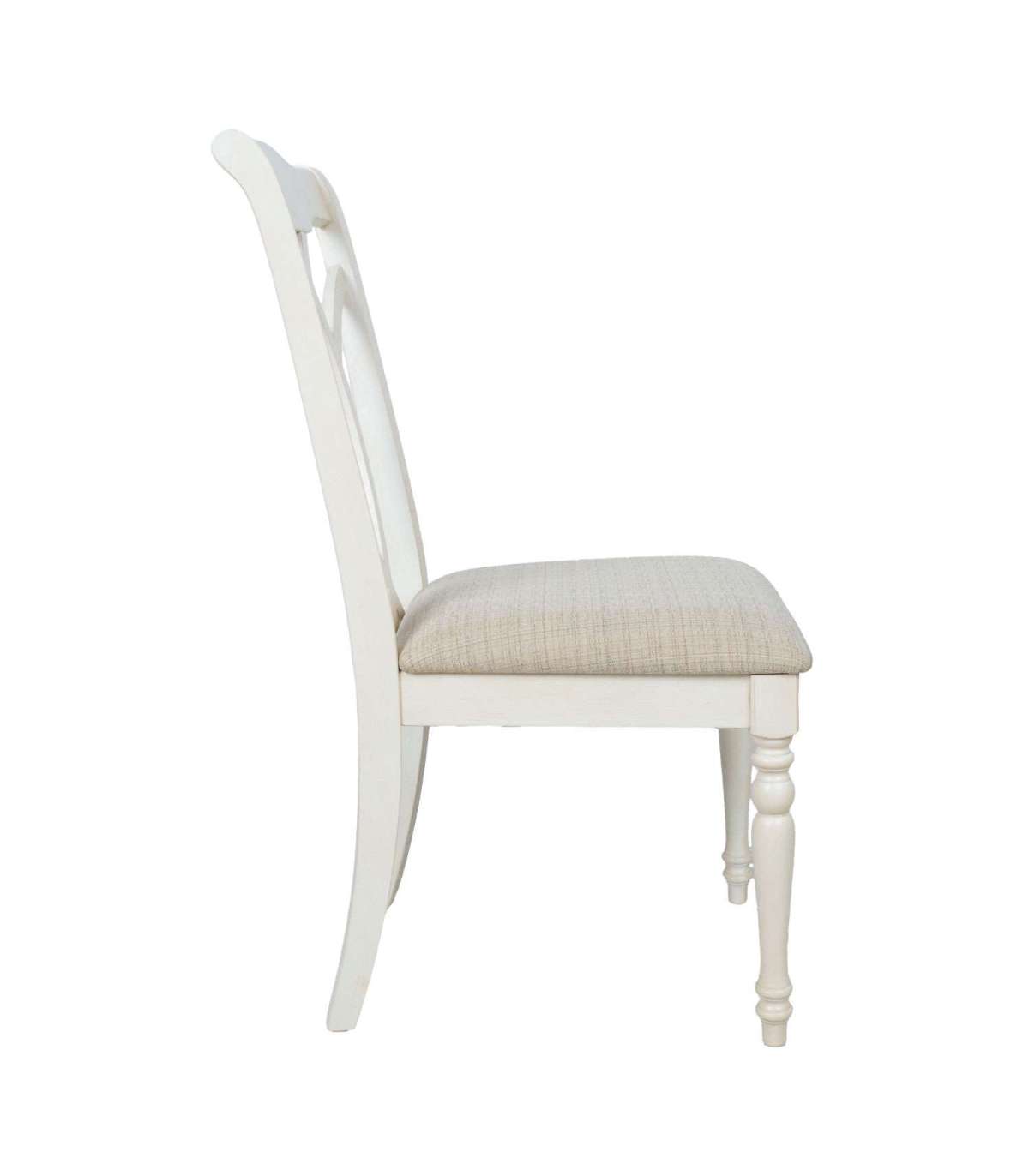 Seljatugi, jalad ja raam on valmistatud kummipuust ja viimistletud antiikvalge värviga.