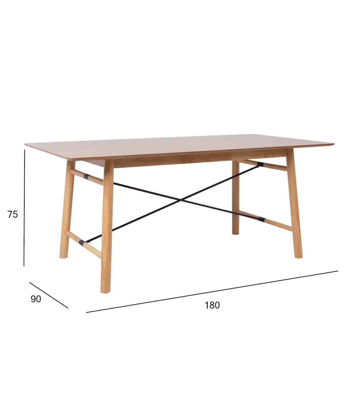 Söögilaud EMERALD 180x90xH75cm, hele tamm. Lauaplaat: naturaalse tammespooniga MDF. Jalad ja raam on valmistatud kummipuust. Must metallist tugikonstruktsiion. Toode on viimistletud naturaalse puidu toonis läbipaistva lakiga.