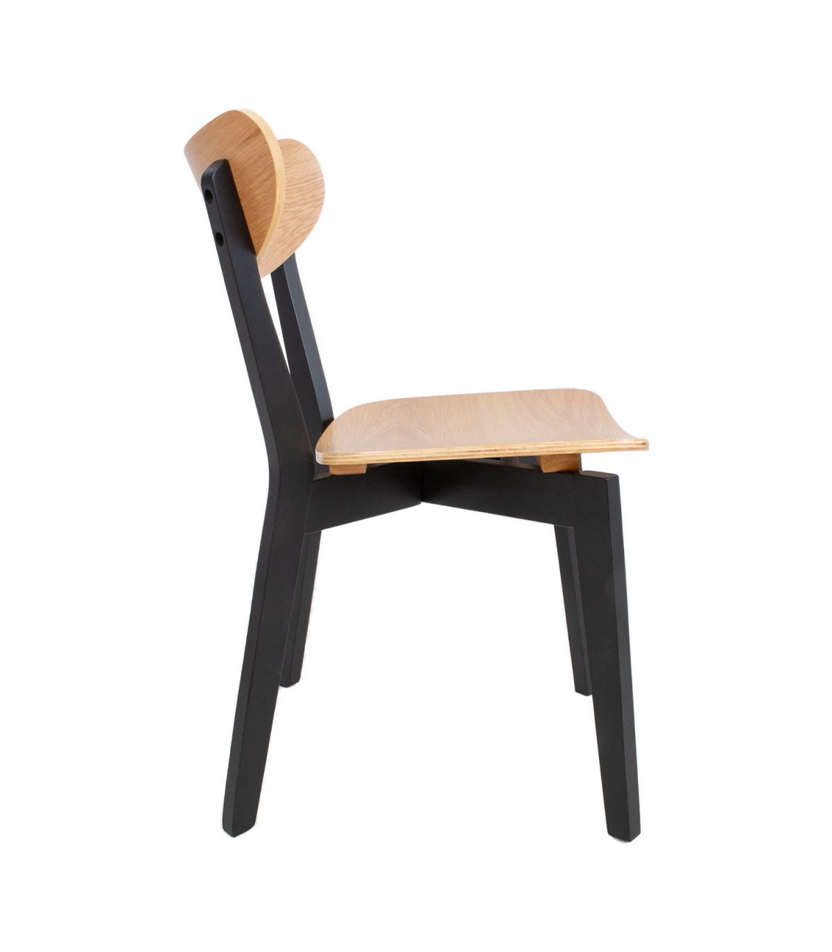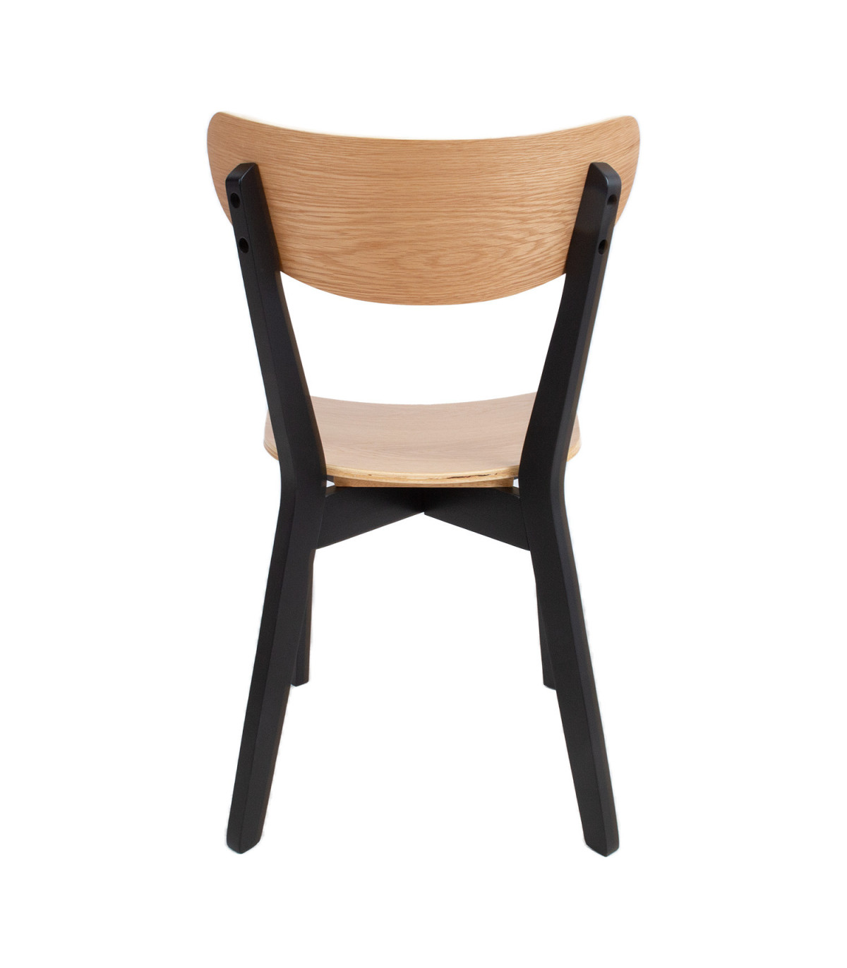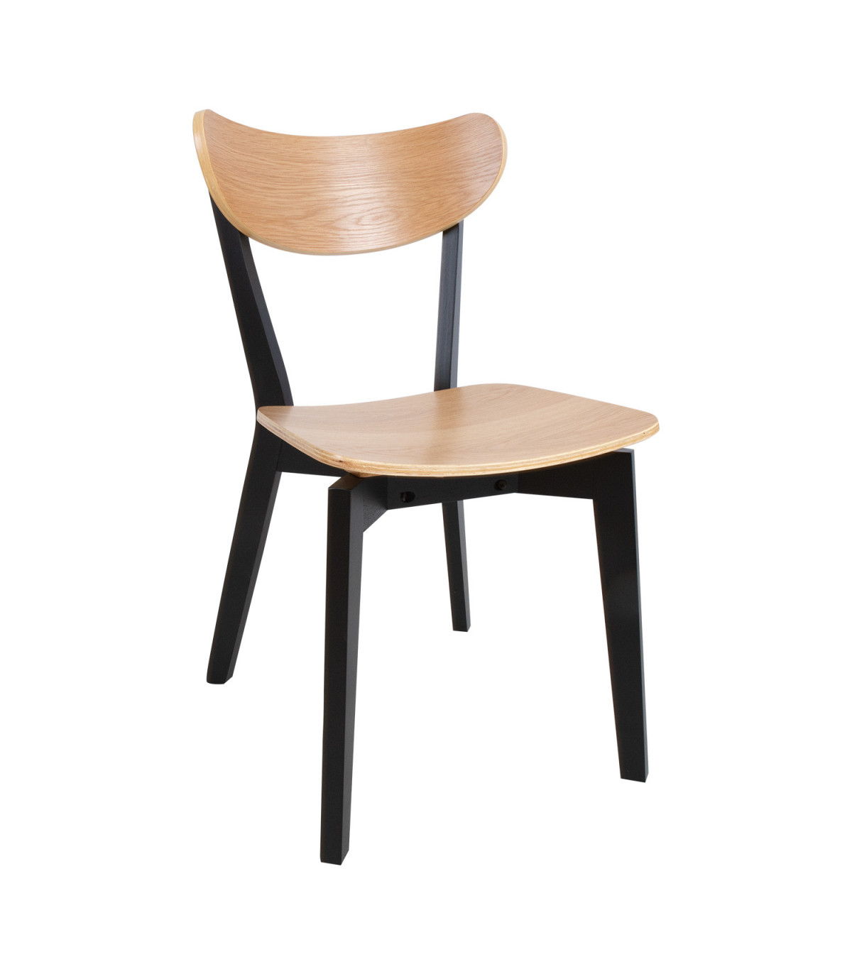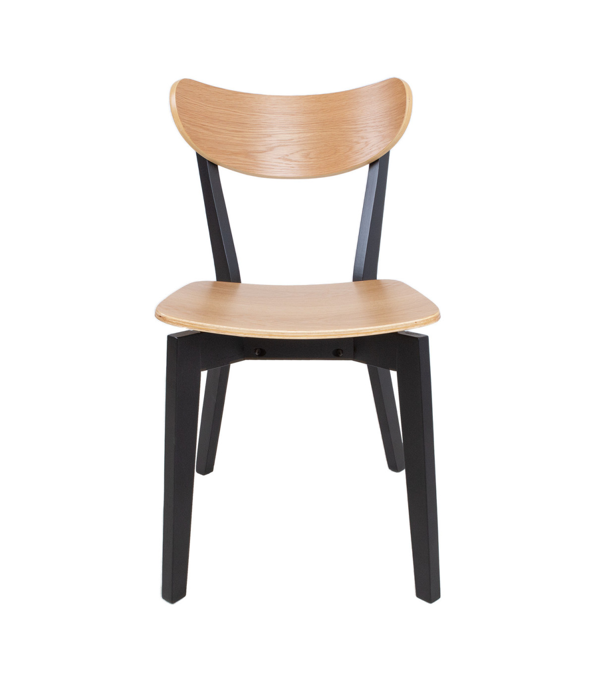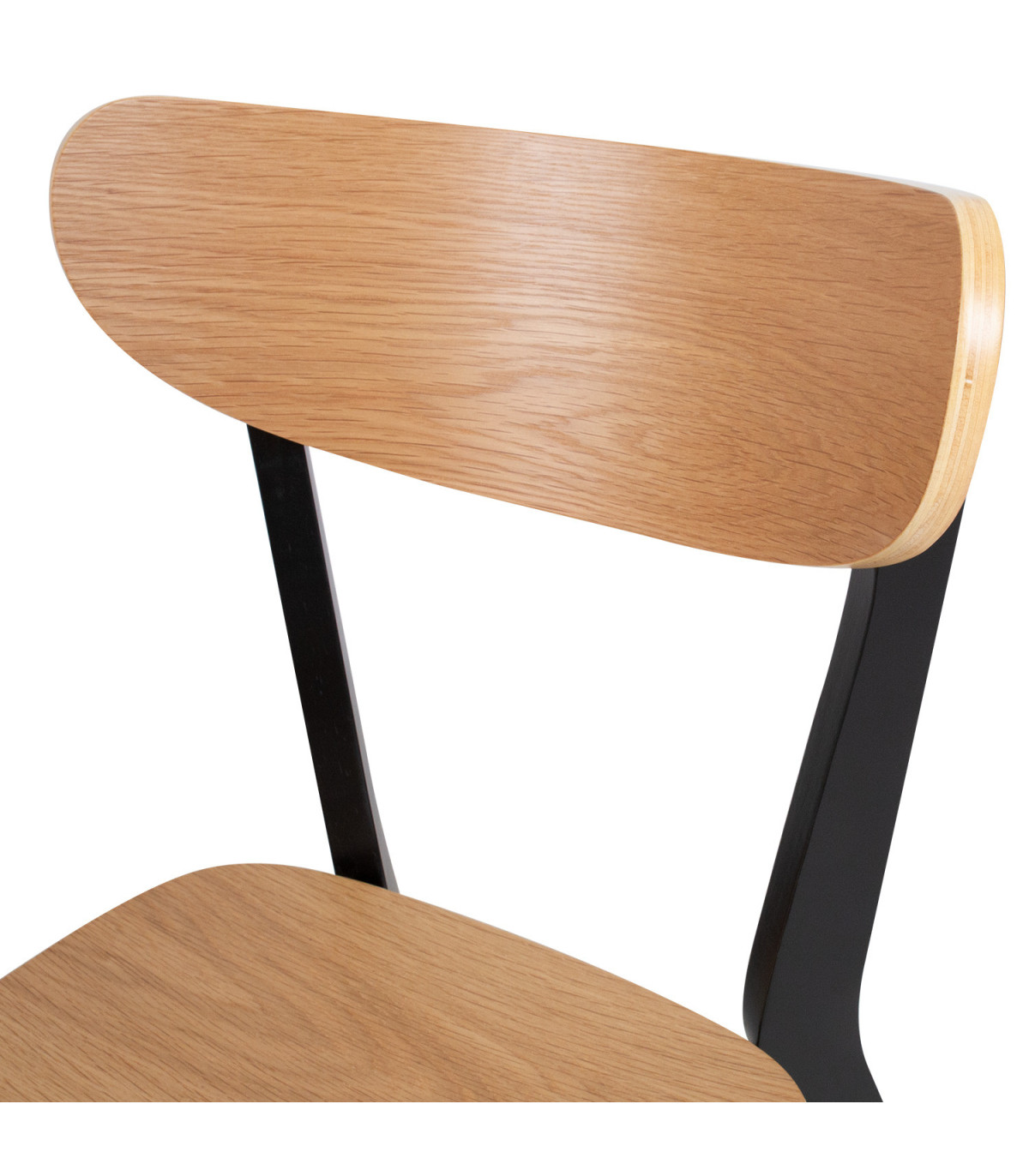 Tooli disainis on kombineeritud retro ja kaasaegne esteetilisus. Universaalne tool sobib igasse söögituppa. Lakitud viimistlusega iste on kaetud naturaalse tammespooniga ja seda toetavad tugevad mustad puidust jalad. Istme kõrgus on 42,5cm. Kaalupiirang: 110kg. Mõõdud on 45x55xH79,5cm. HOOLDUS: Üldiselt vajavad lakitud pinnad vähe hooldust. Kõik plekid tuleb koheselt eemaldada seebiveest kuivaks väänatud lapiga.