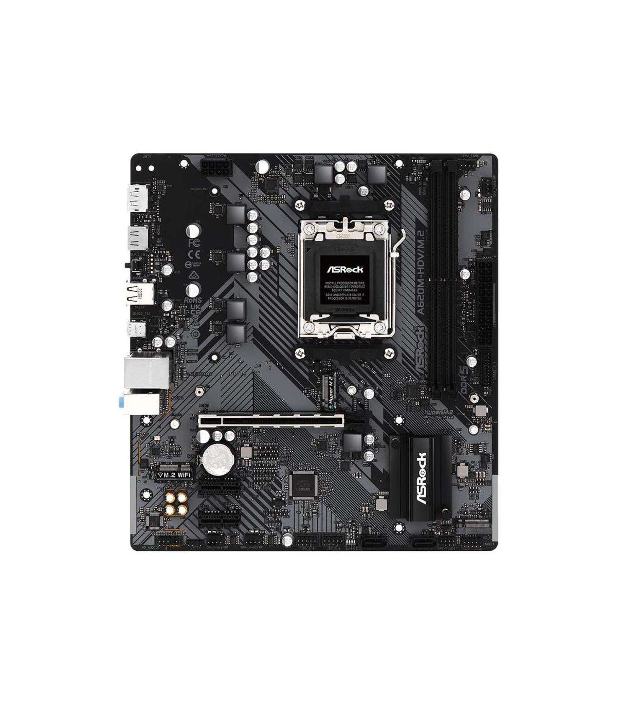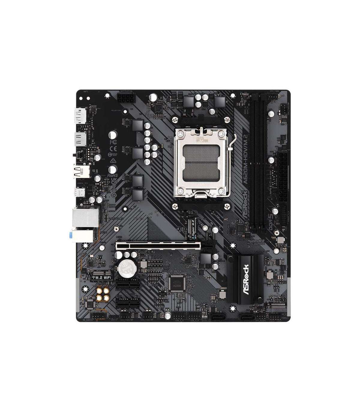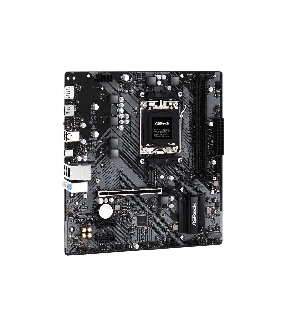 AMD A620 | SAM5 | Micro-ATX | DDR5 | 6400 MHz | Memory slots 2 | 2xPCI-Express 3.0 1x | 1xPCI-Express 4.0 16x | 2xM.2 | 1xHDMI | 1xDisplayPort | 2xUSB 2.0 | 2xUSB 3.2 | 1xUSB-C | 1xRJ45 | 3xAudio port | SATA | USB 2.0 | USB 3.2 | Video Depending on CPU | Audio Realtek ALC897 | LAN Gigabit | RAID SATA 0, 1; NVMe 0, 1, 10