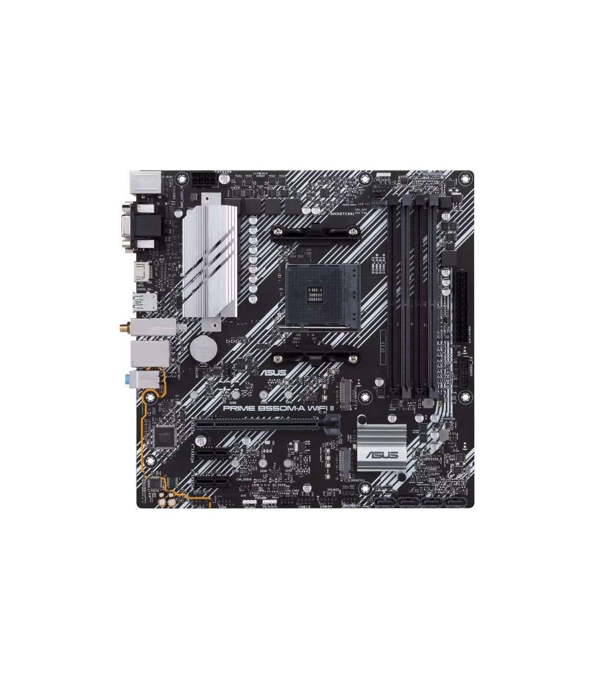Asus | PRIME B550M-A WIFI II | Processor family AMD | Processor socket AM4 | DDR4 DIMM | Memory slots 4 | Supported hard disk drive interfaces SATA, M.2 | Number of SATA connectors 4 | Chipset AMD B550 | microATX