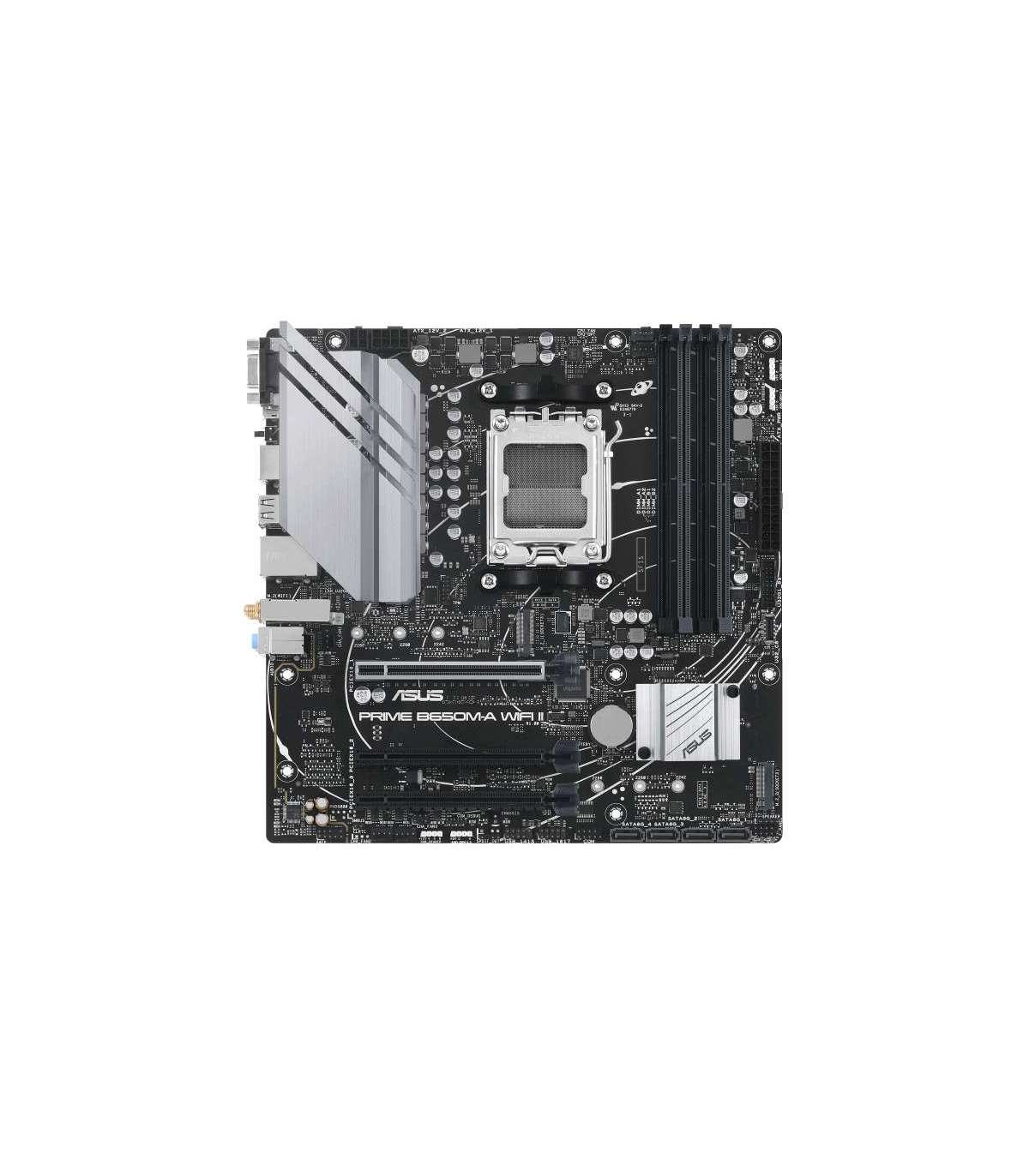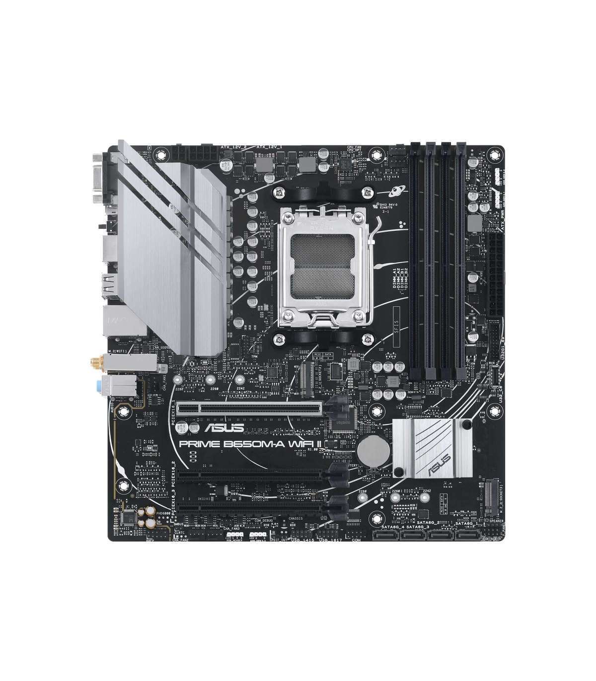 Asus | PRIME B650M-A WIFI II | Processor family AMD | Processor socket AM5 | DDR5 DIMM | Memory slots 4 | Supported hard disk drive interfaces SATA, M.2 | Number of SATA connectors 4 | Chipset AMD B650 | mATX