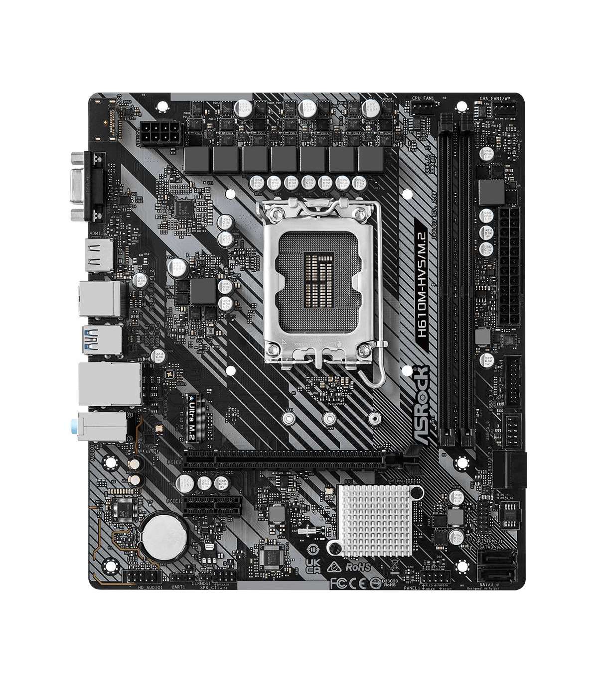ASRock | H610M-HVS/M.2 R2.0 | Processor family Intel | Processor socket LGA1700 | DDR4 DIMM | Memory slots 2 | Supported hard disk drive interfaces SATA, M.2 | Number of SATA connectors 4 | Chipset H610 | Micro ATX