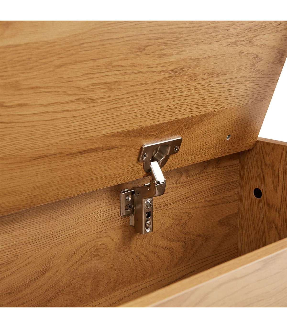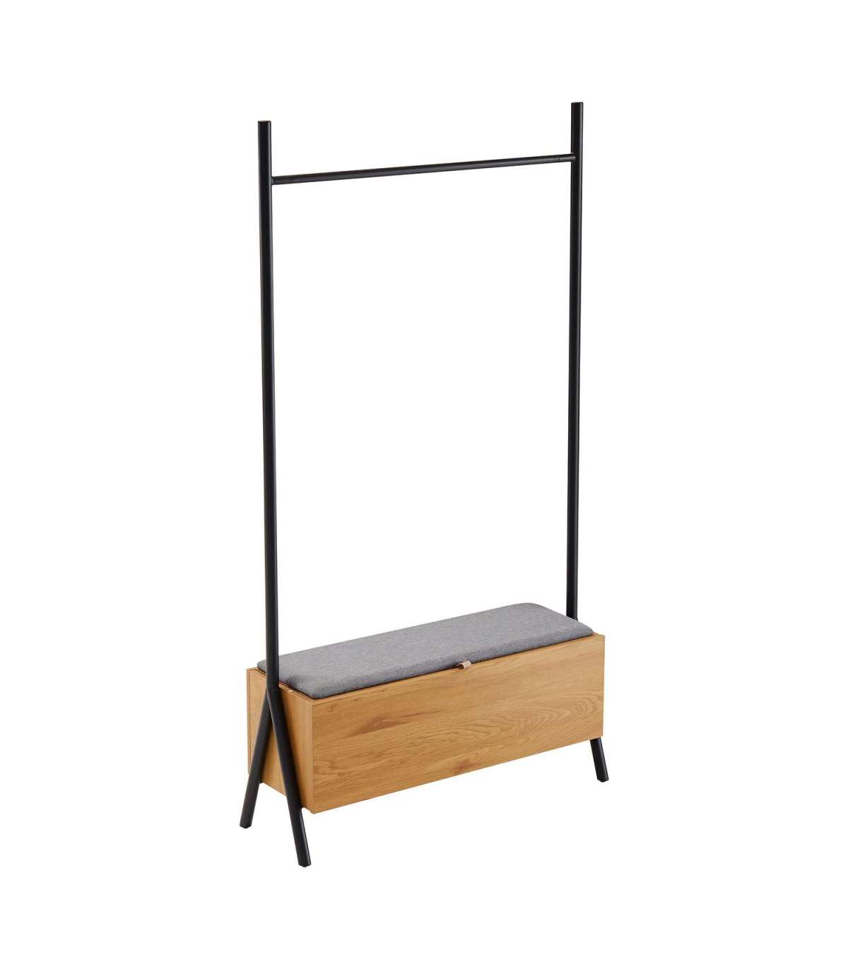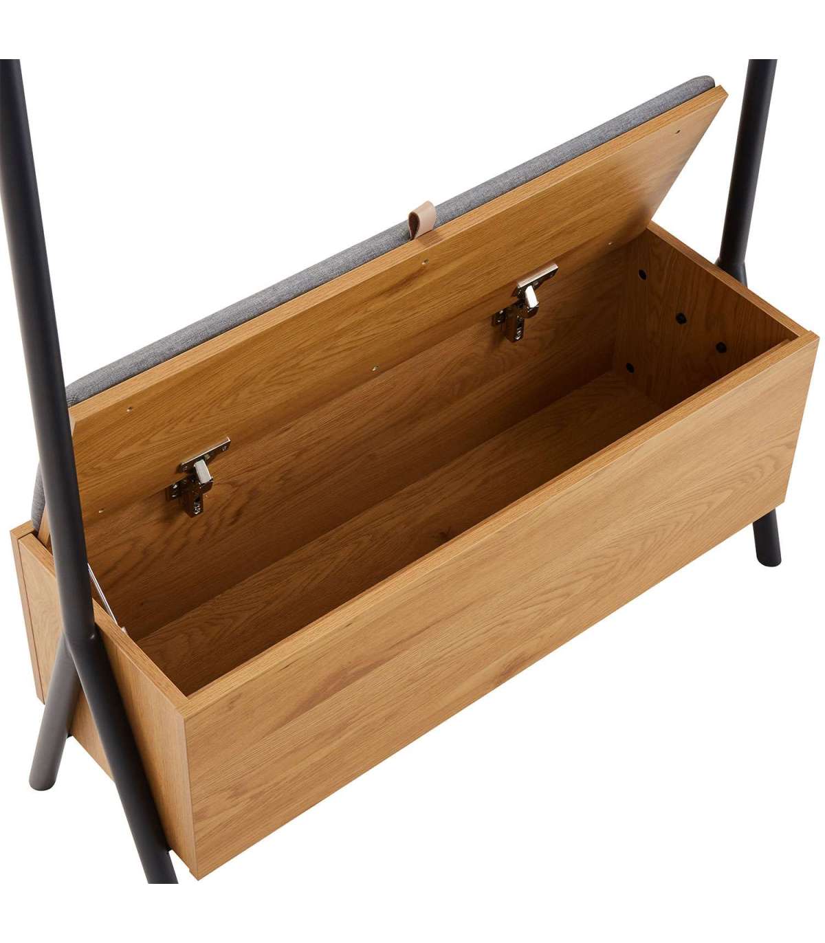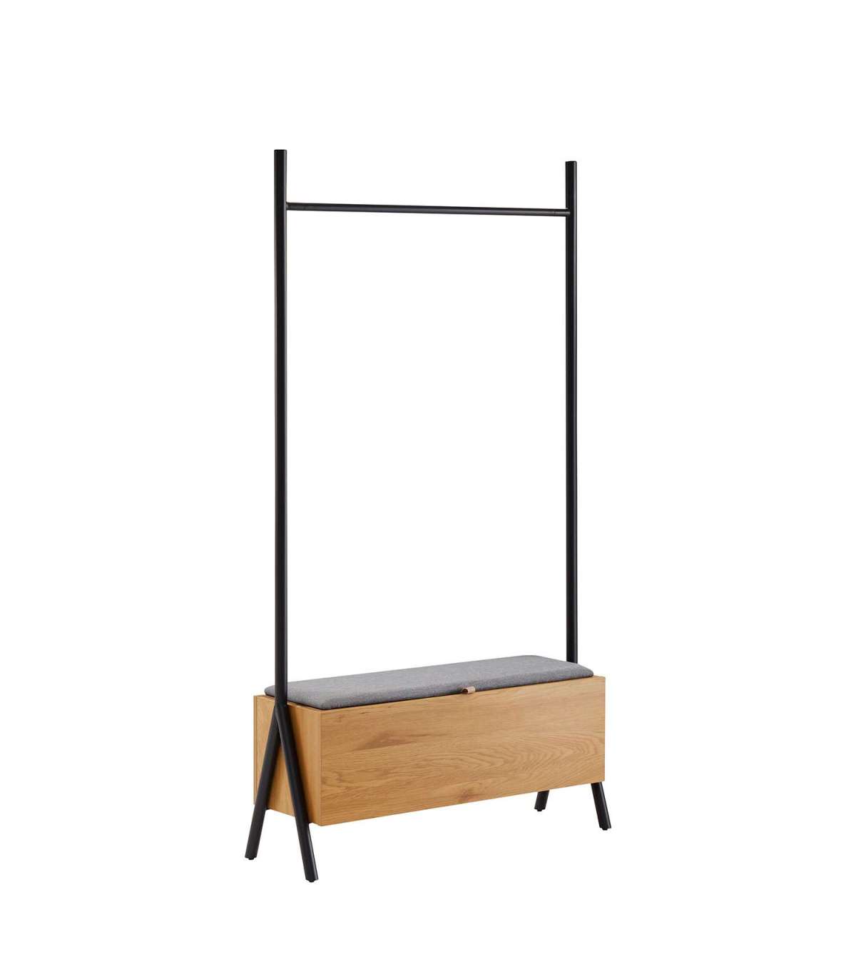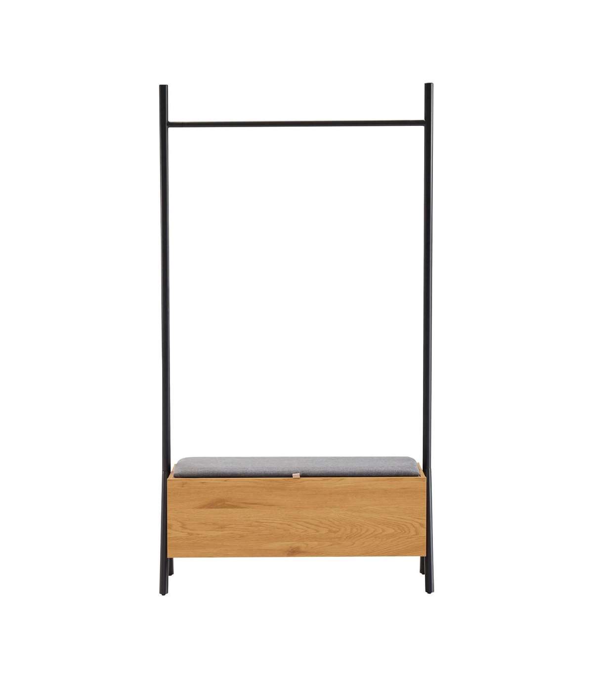 Esikunagi AALBORG pingiga 97x32xH180cm, melamiin tammedekooriga. Stange raam on valmistatud metallist ja viimistletud musta pulbervärviga. Pink on valmistatud melamiinplaadist. Pingi sees on mahukas panipaik. Iste on kergel polsterdatud ja kaetud polüesterkangaga.