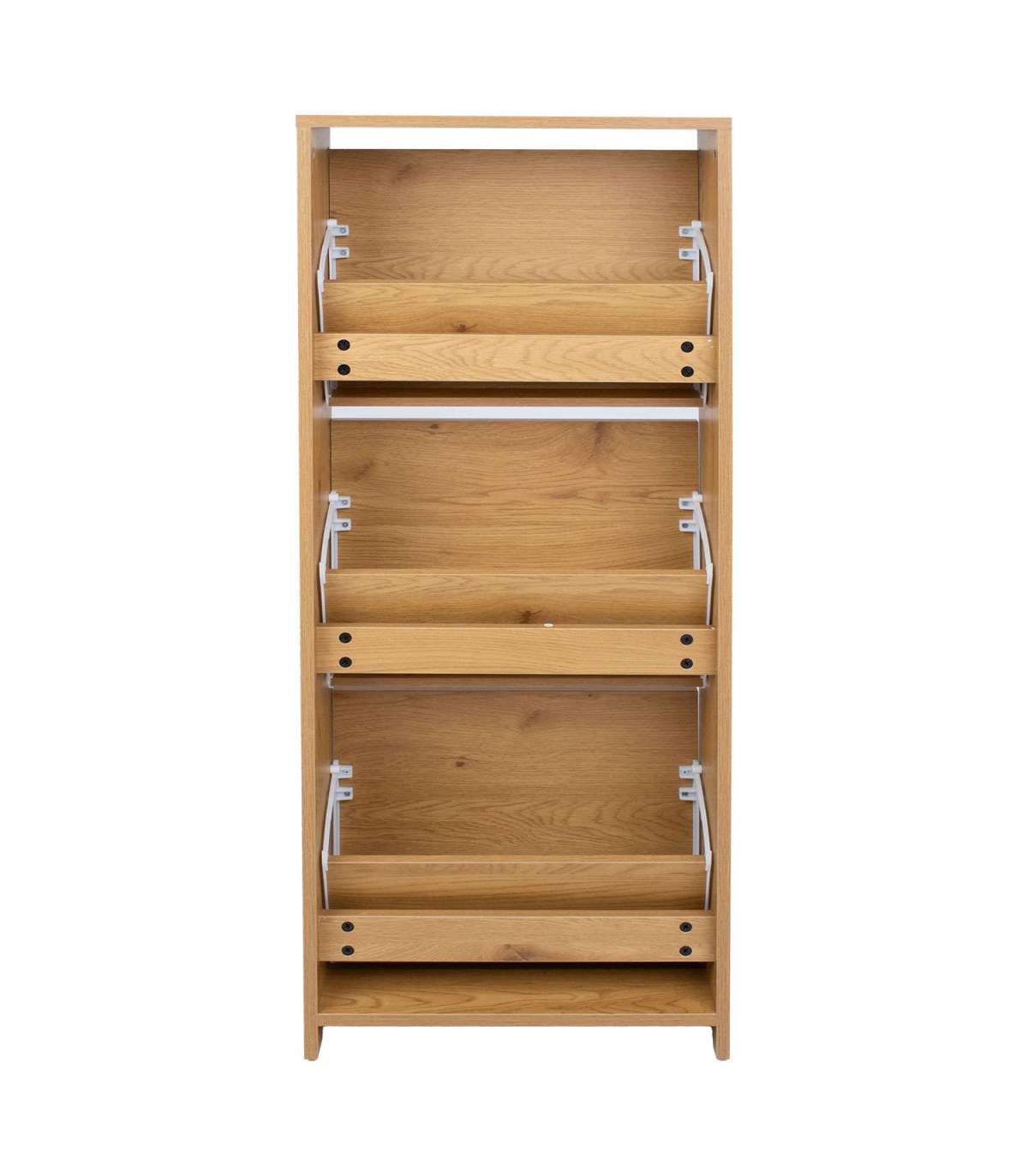 Jalatsikapp AALBORG 49x18xH122cm, melamiin tammedekooriga. Kapil on kolm sahtlit jalanõude paigutamiseks. Kapp on valmistatud melamiinplaadist.