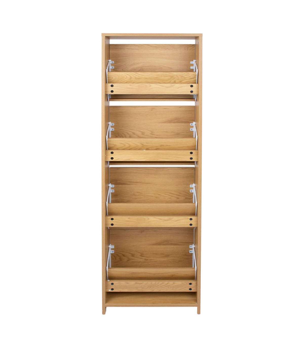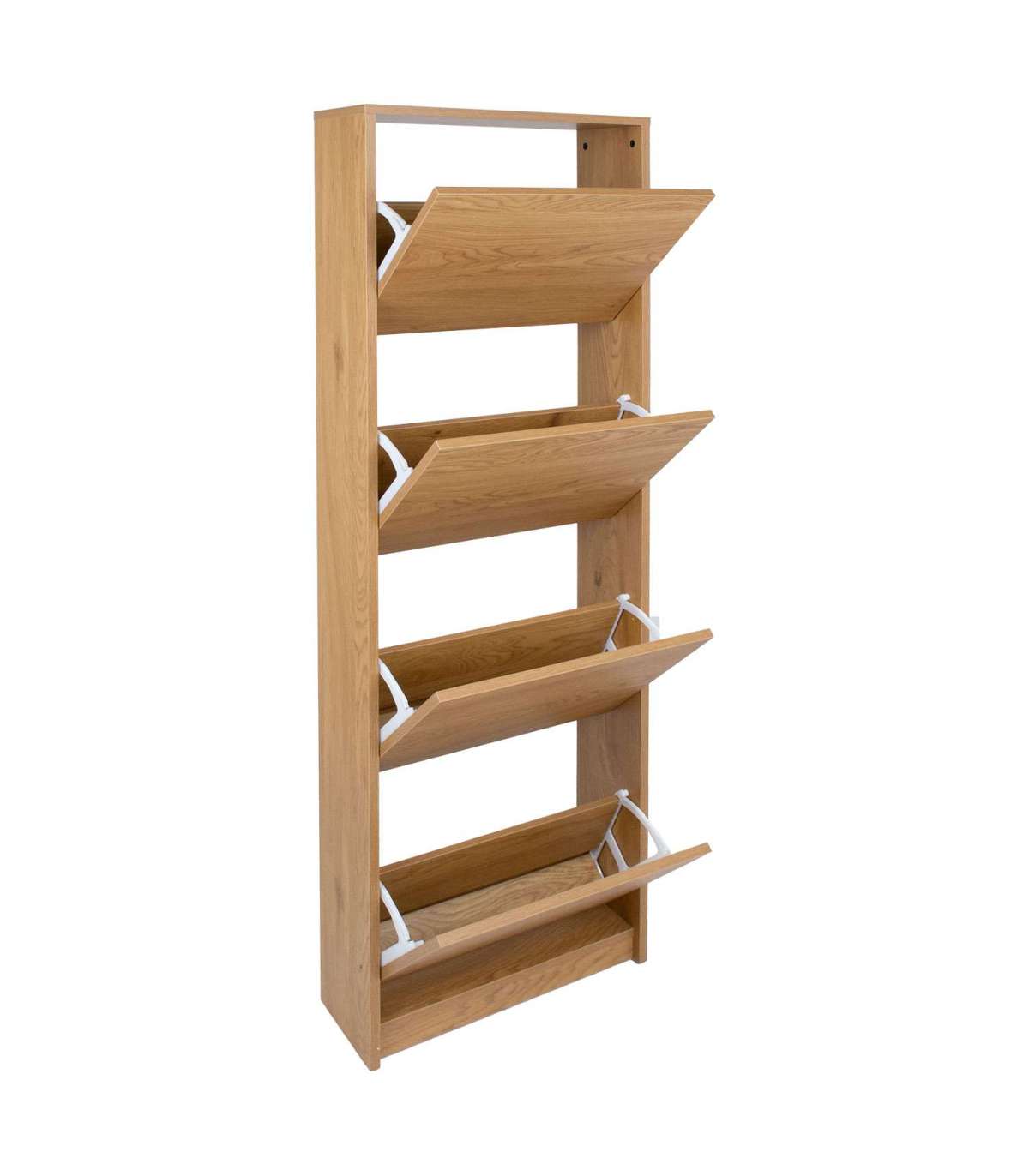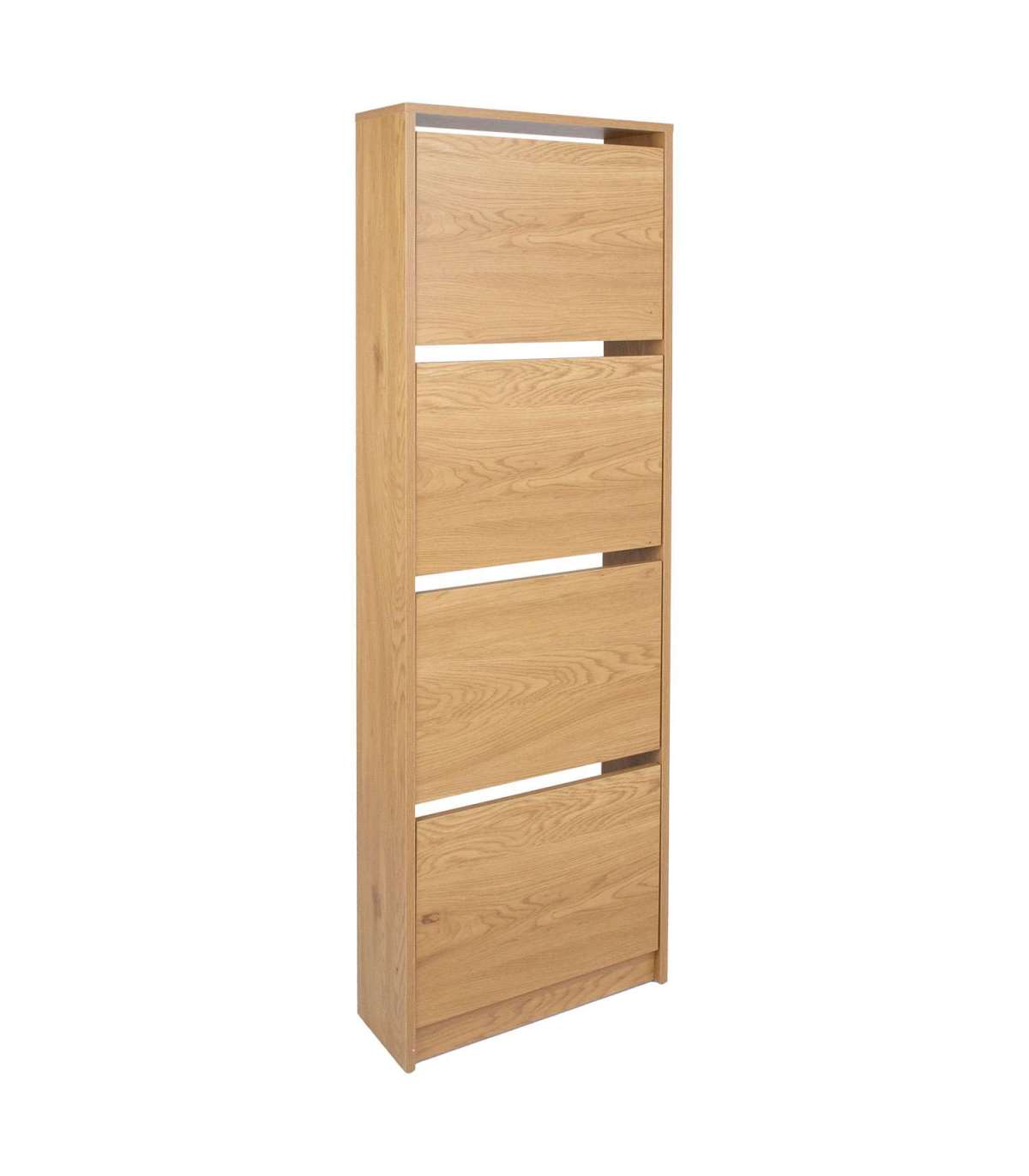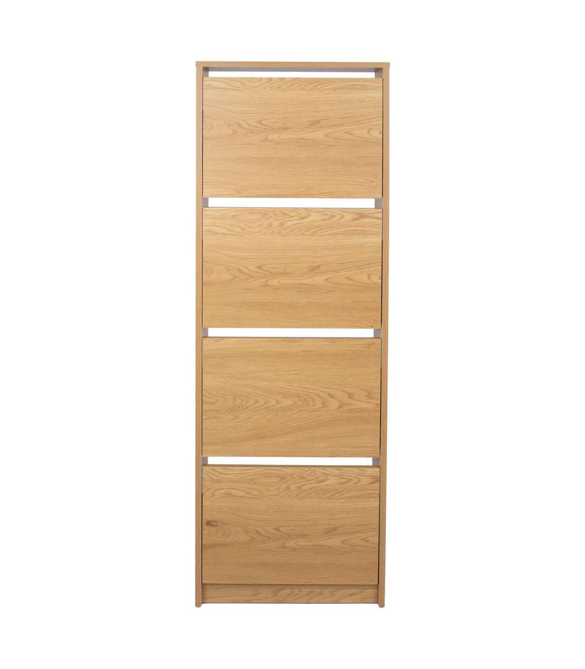 Jalatsikapp AALBORG 49x18xH160cm, melamiin tammedekooriga. Kapil on neli sahtlit jalanõude paigutamiseks. Kapp on valmistatud melamiinplaadist.