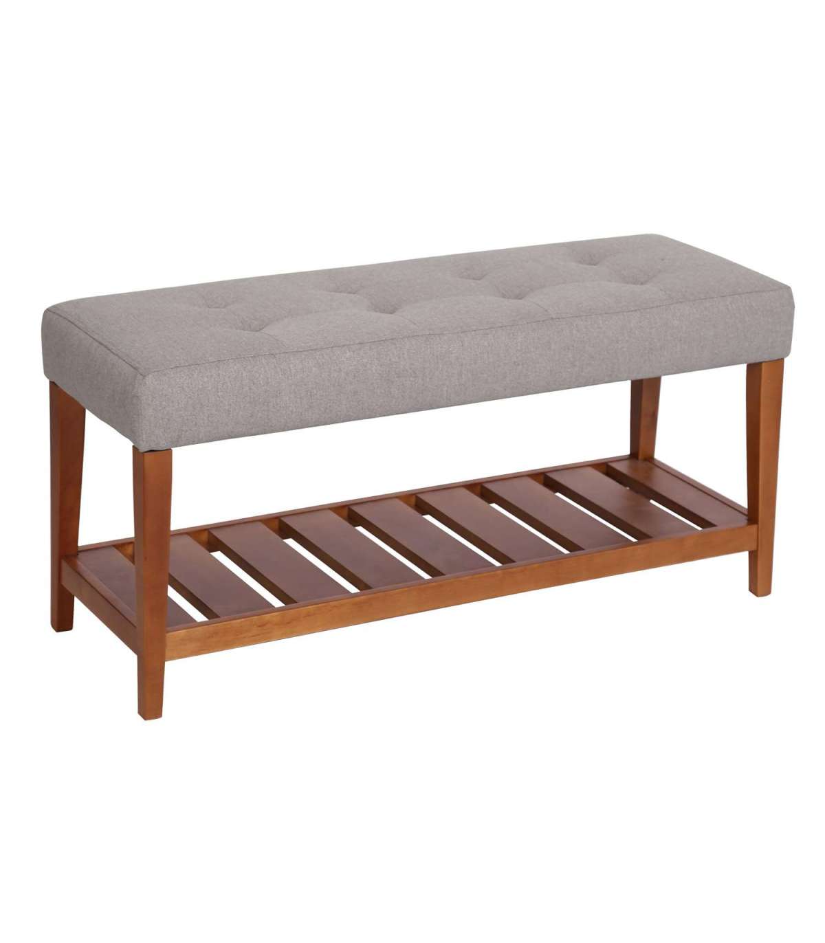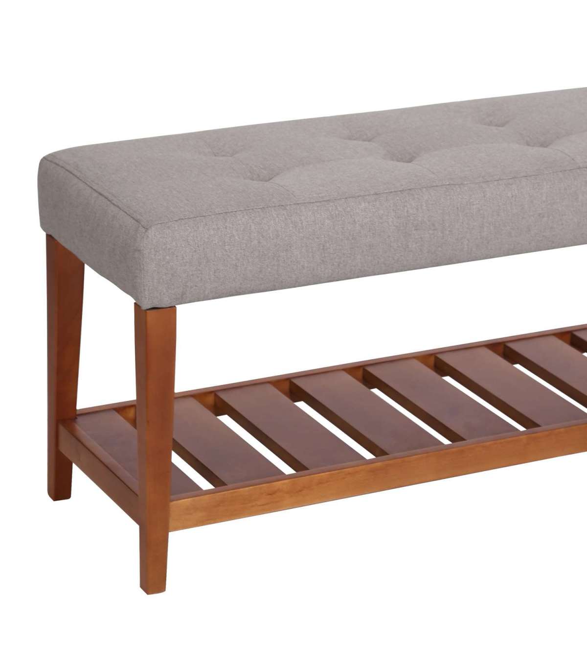 Pink BRIGITA helepruun. Mugav iste on kergelt polsterdatud ja kaetud helepruuni kangaga. Kattematerjal: 100% polüester, Martindale 25 000. Istme karkass: metall ja vineer. Polsterdus: polüuretaanvaht. Raam on täispuidust kask. Pingil on riiul, kuhu jalanõusid asetada. Kaalupiirang 100kg.