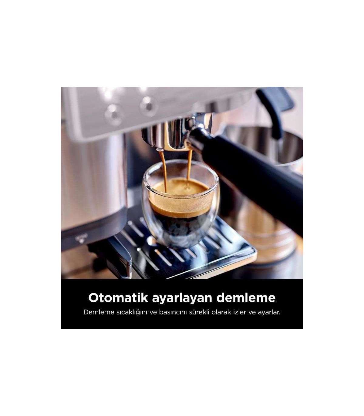 Funktionen wie der integrierte Kaffeestampfer und das doppelte Aufschäumsystem verbessern das Barista-Erlebnis zu Hause. - Großzügiges Fassungsvermögen
