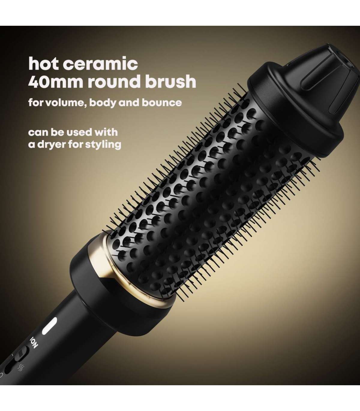 Kuum keraamiline ja ioonne 40 mm ümmargune pintsel volüümi, keha ja hüppe suurendamiseks koos täiustatud lainete ja liikumisega.