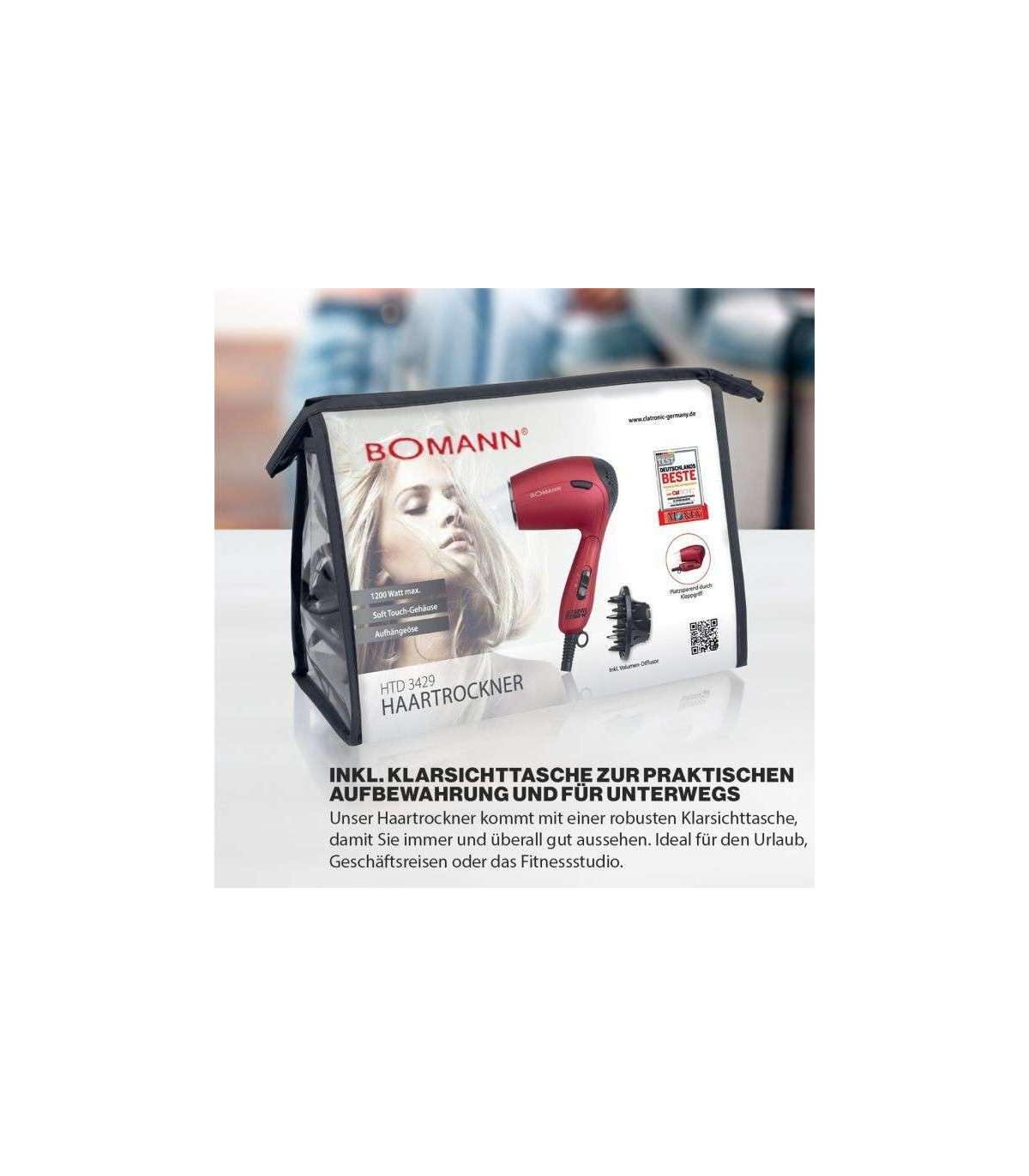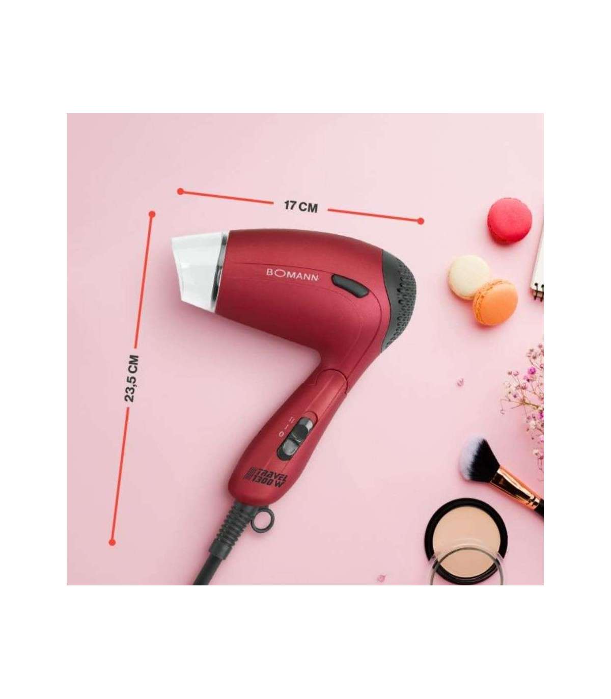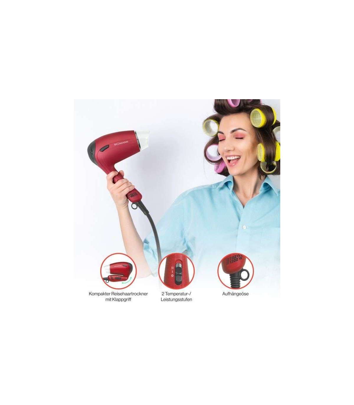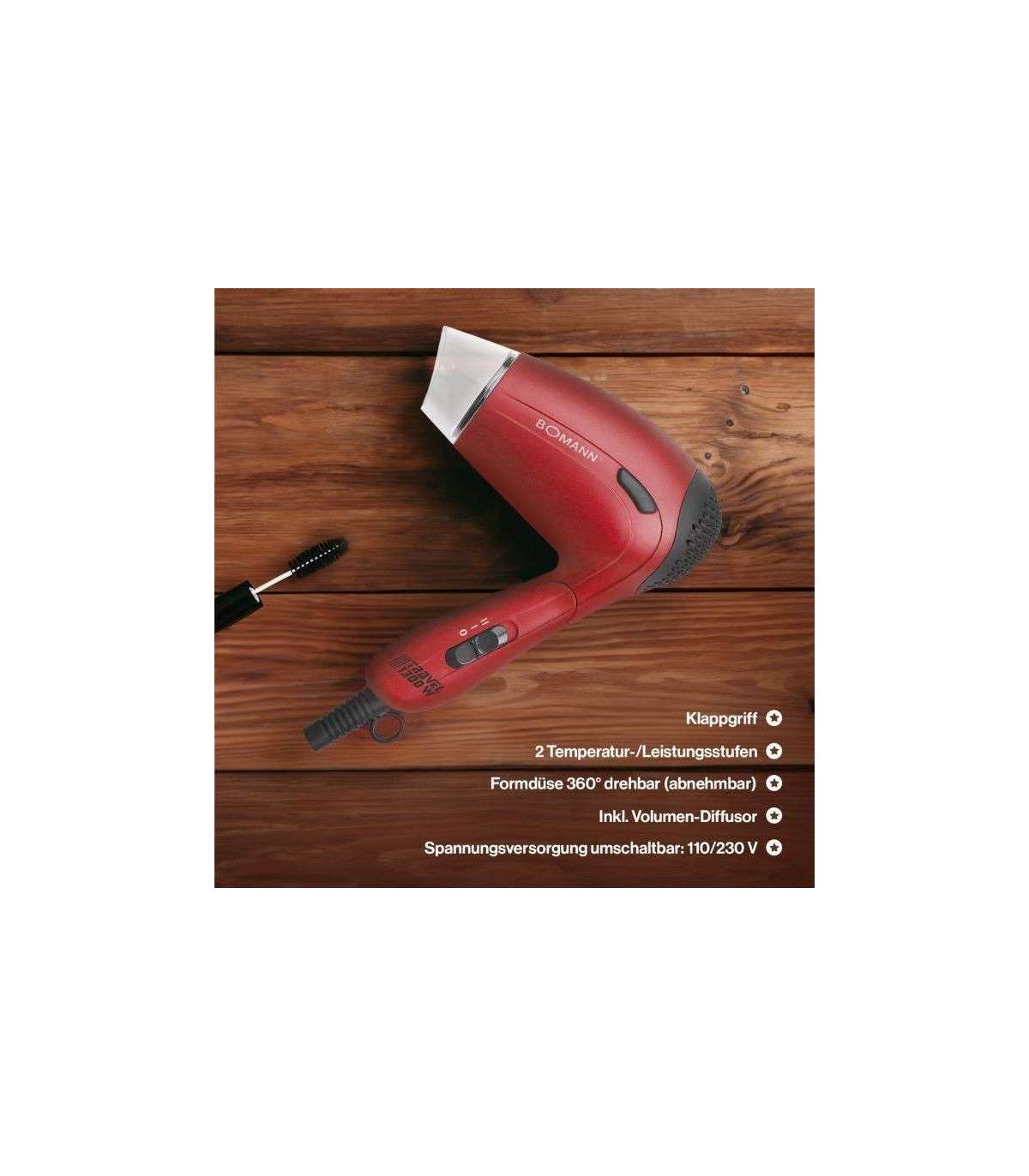 Kompaktse disaini ja kokkupandava käepidemega Bomann® reisiföön on alati valmis juukseid kiiresti kuivatama ja soengusse sättima – jätke reisil olles "halbade juuksepäevadega" hüvasti!