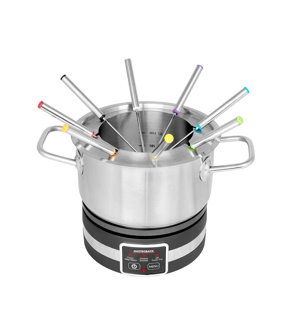 3 temperatuuri seadistust: 50 °C šokolaadifondüü ja soojas hoidmiseks, 90 °C juustufondüü ja hautamiseks, 210 °C puljongi- ja rasvafondüü ning keetmiseks ja praadimiseks