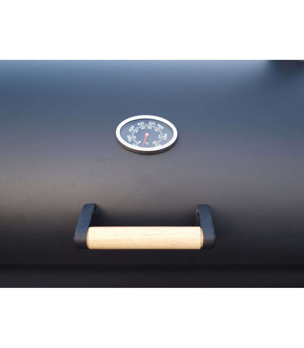 Valmistatud terasest, kaetud kuumakindla värviga , kaks kuumutuskambrit (suuremas kambris kaks grillimisala), kroomitud grillrestid, termomeeter, kaks hoiustamisala. Mõõdud: (l x k x s) 115 x 133 x 65 cm