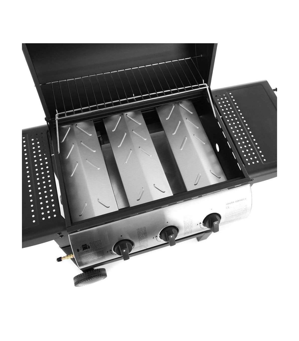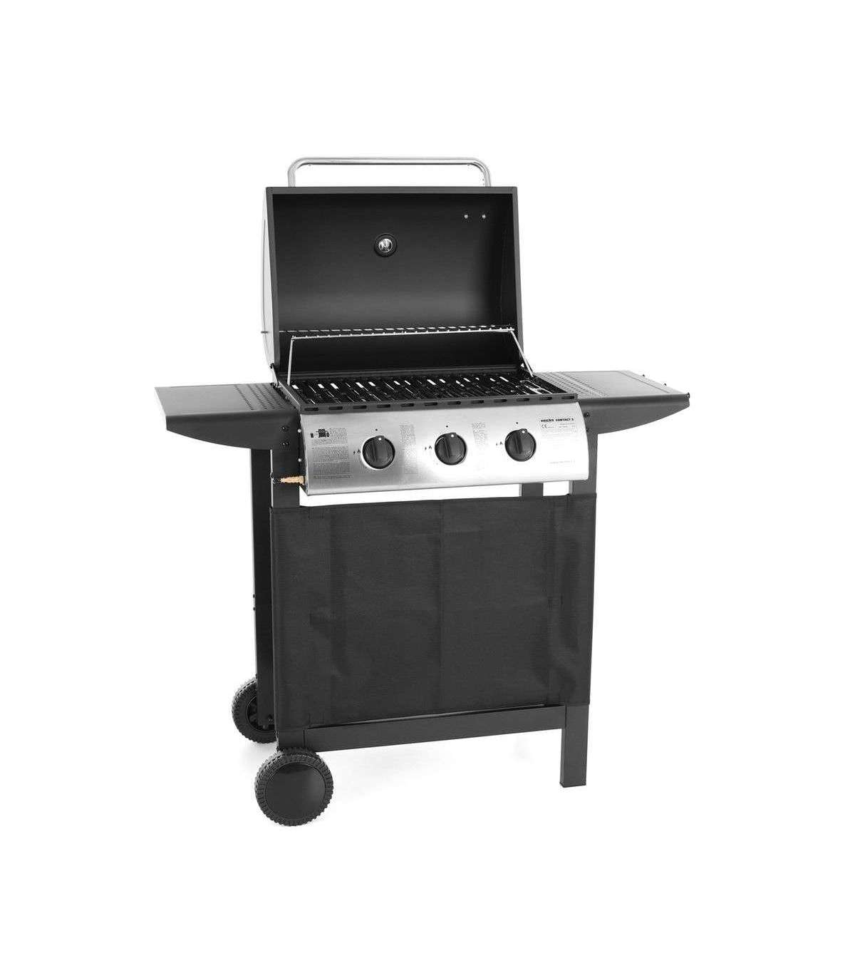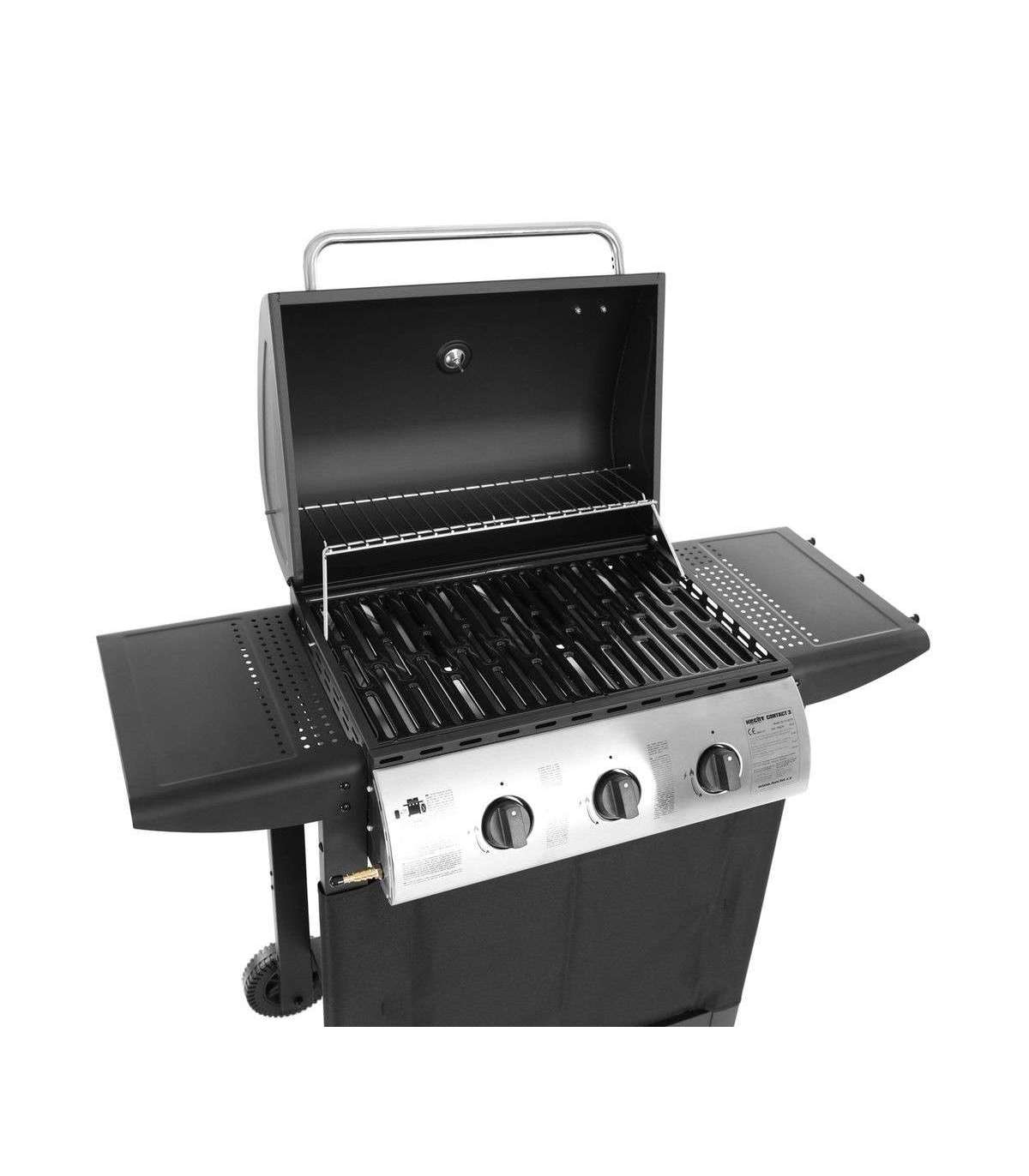 3 reguleeritavat põletit võimsusega 8,4 kW. Külgedel tööpinnad. Tagumine rest soojendamiseks või röstimiseks. Rattad kergemaks transportimiseks. Kaanel integreeritud termomeeter grillimistemperatuuri kontrollimiseks. Propaan-butaan gaasigrill. 3 peapõletit, koguvõimsus 8,4 kW. Grillimispinna suurus kokku on 61 x 41 cm. Suletud kaanega on grill 101 cm kõrge, 98,6 cm lai ja 48 cm sügav. Reduktor ja voolik ei kuulu komplekti.