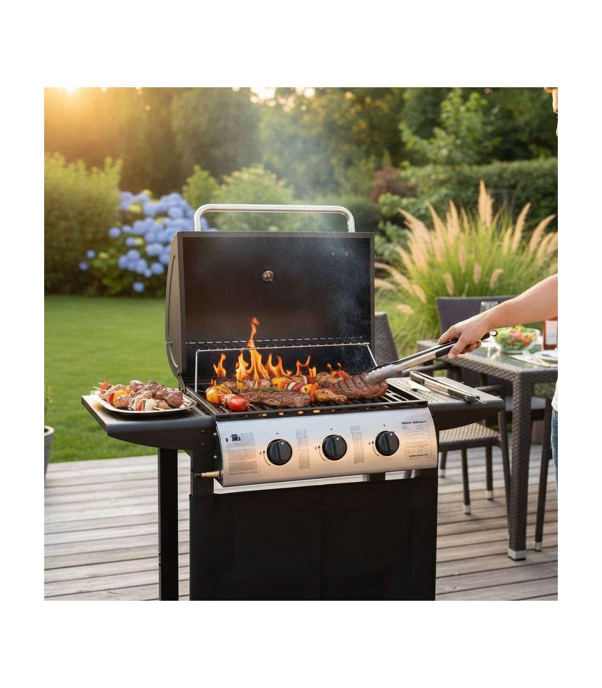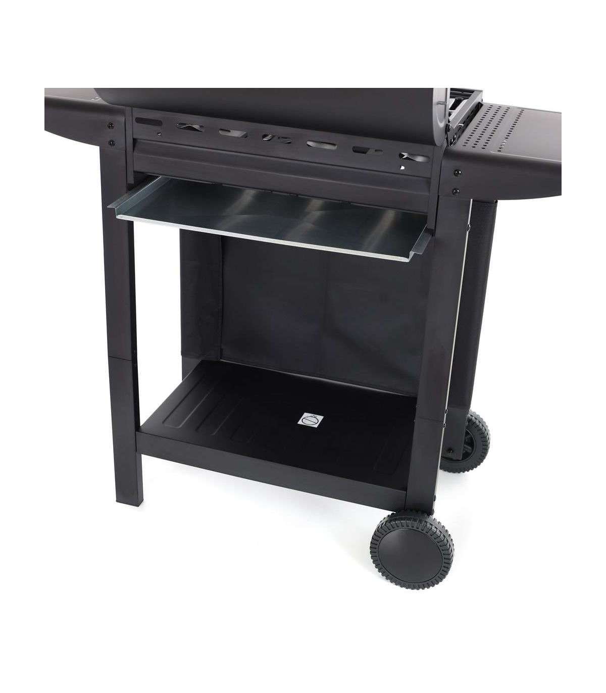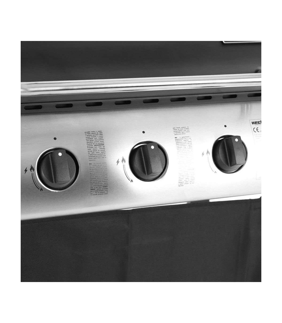 3 reguleeritavat põletit võimsusega 8,4 kW. Külgedel tööpinnad. Tagumine rest soojendamiseks või röstimiseks. Rattad kergemaks transportimiseks. Kaanel integreeritud termomeeter grillimistemperatuuri kontrollimiseks. Propaan-butaan gaasigrill. 3 peapõletit, koguvõimsus 8,4 kW. Grillimispinna suurus kokku on 61 x 41 cm. Suletud kaanega on grill 101 cm kõrge, 98,6 cm lai ja 48 cm sügav. Reduktor ja voolik ei kuulu komplekti.