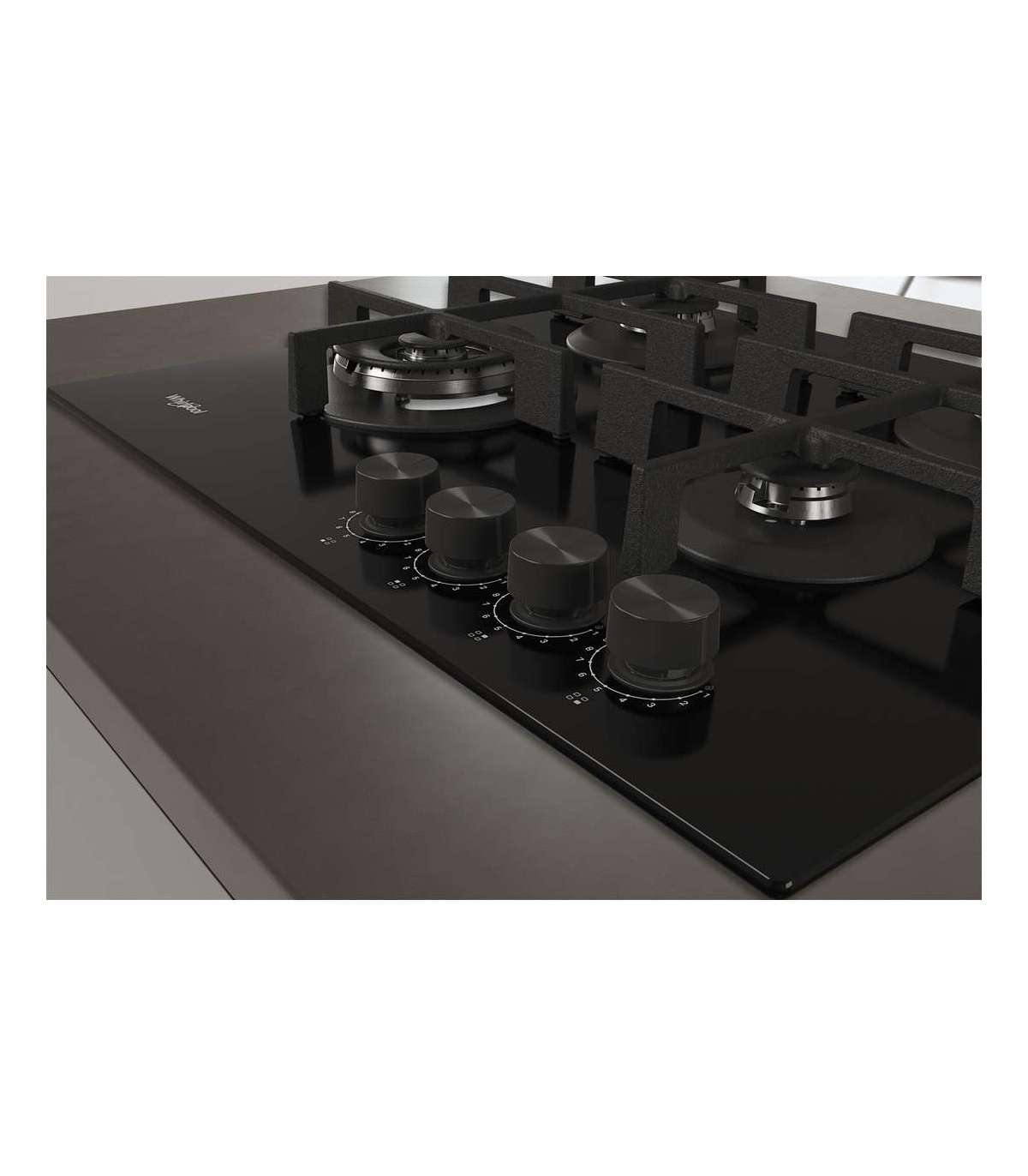 Energiatõhus gaasiplaat Whirlpool elegantse musta klaaspinnaga