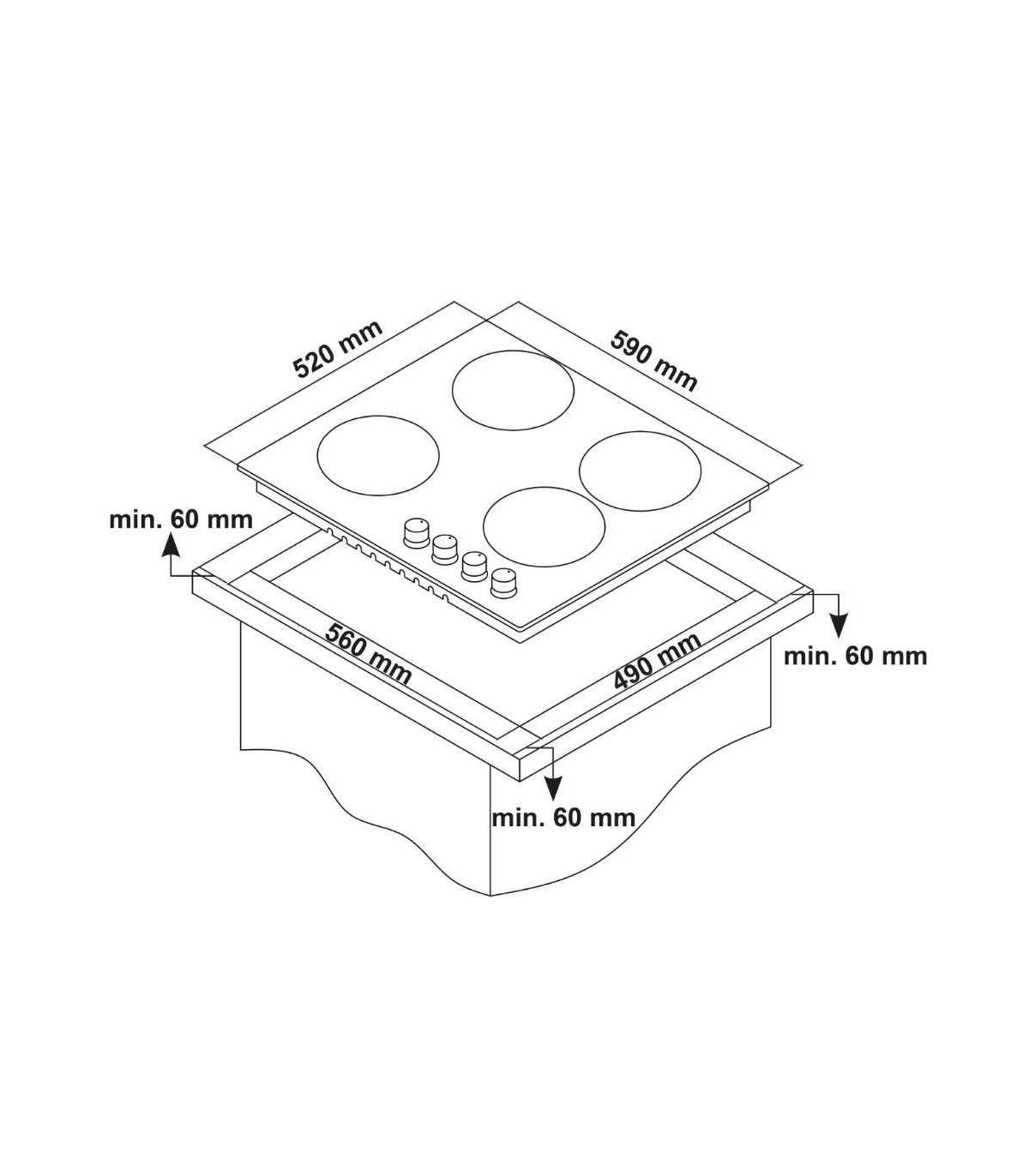 - Vasakpoolne esimene tsoon: WOK-põleti 3,5 kW / Ø 131 mm