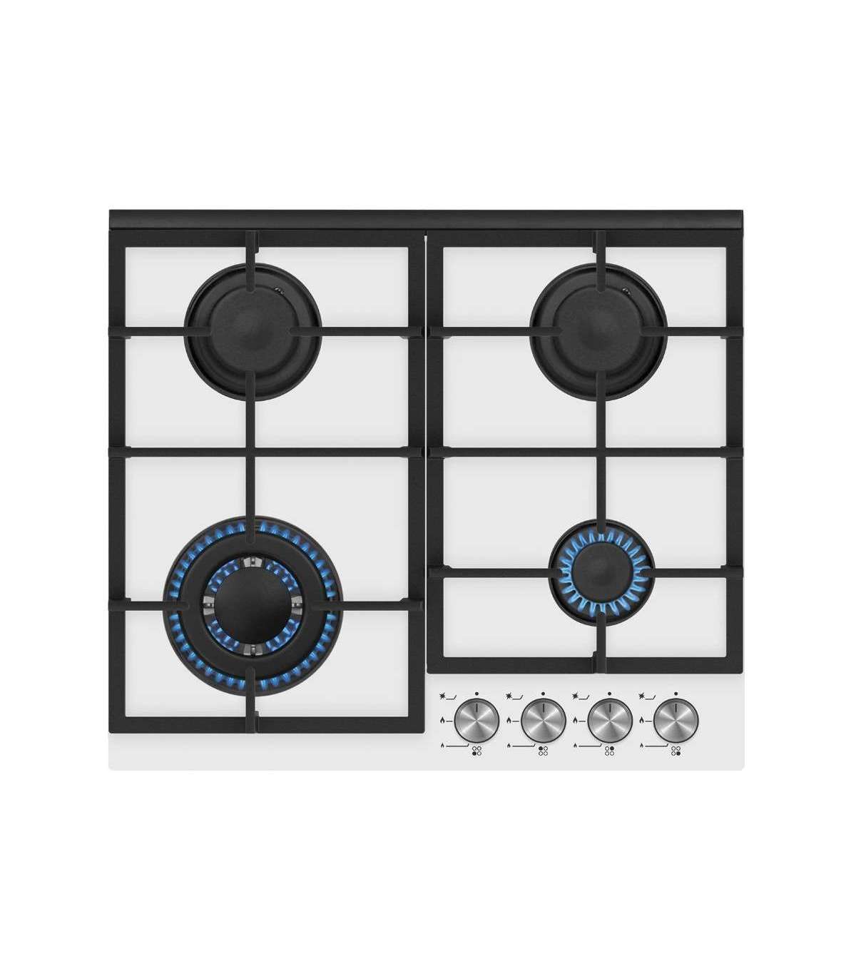 Valge klaaskeraamilise pinnaga 60 cm laiune 4 põletiga gaasiplaat Kluge.