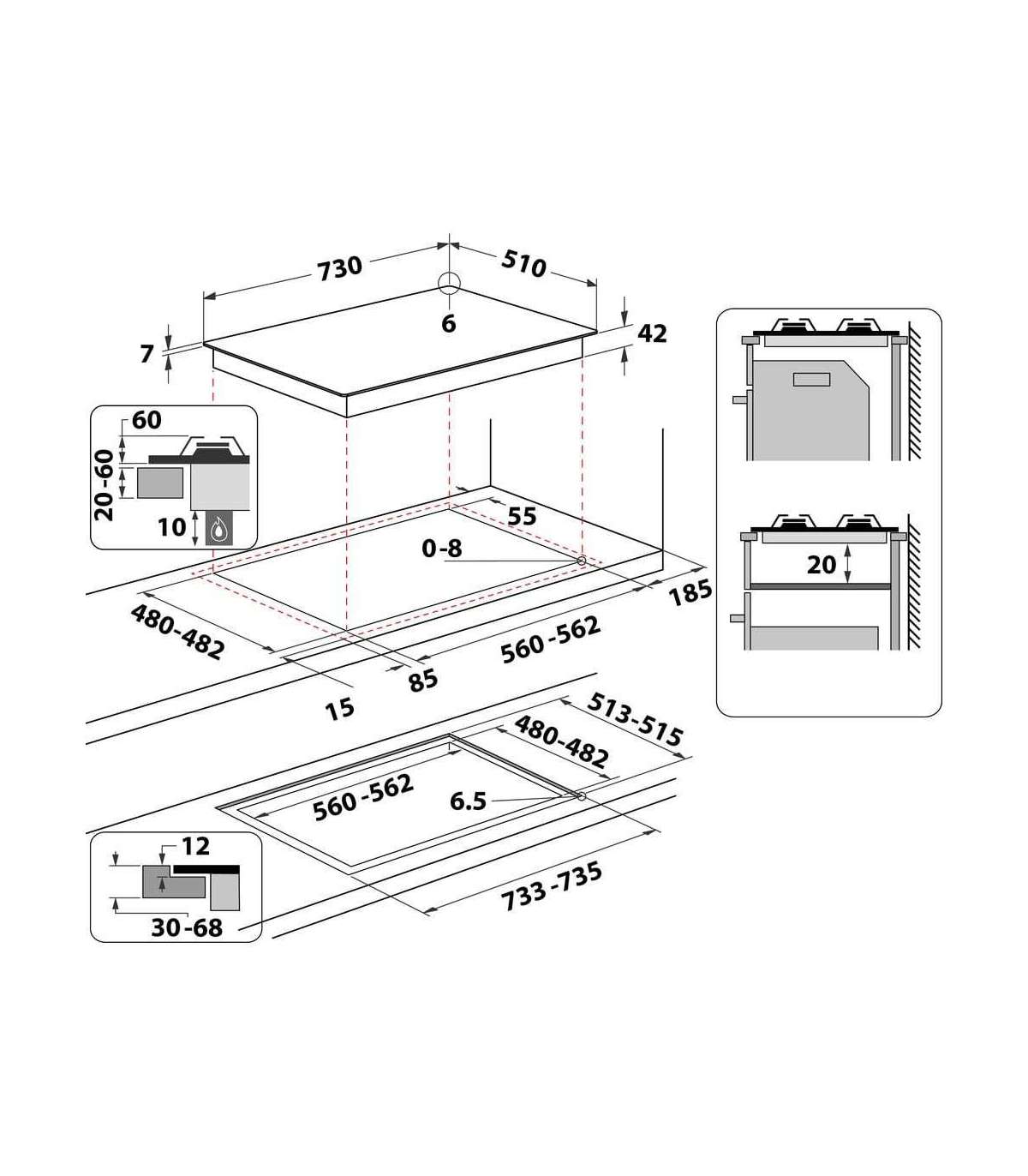 Whirlpool AKWL 728/NB Black Built-in 75 cm Gas 5 zone(s)