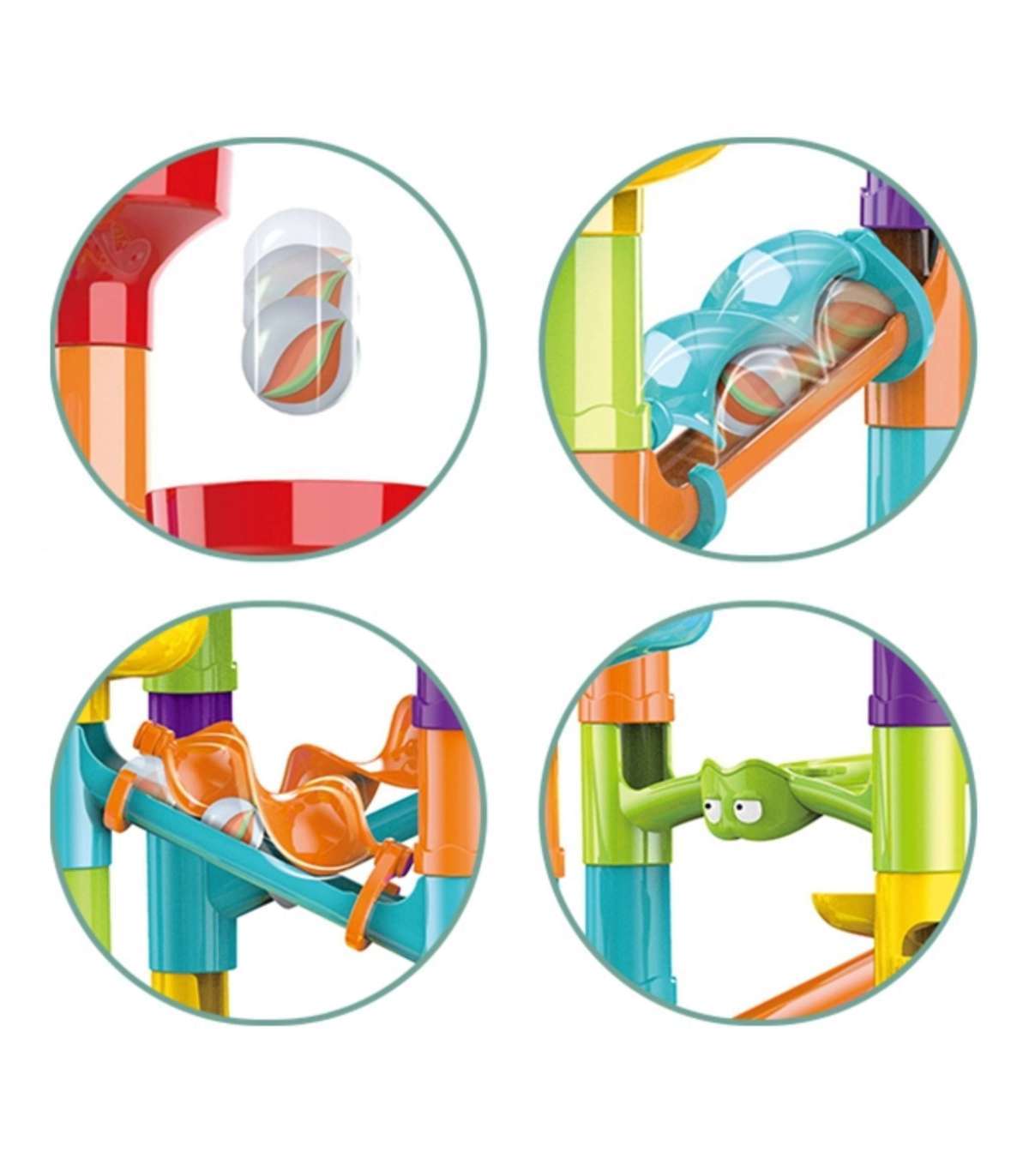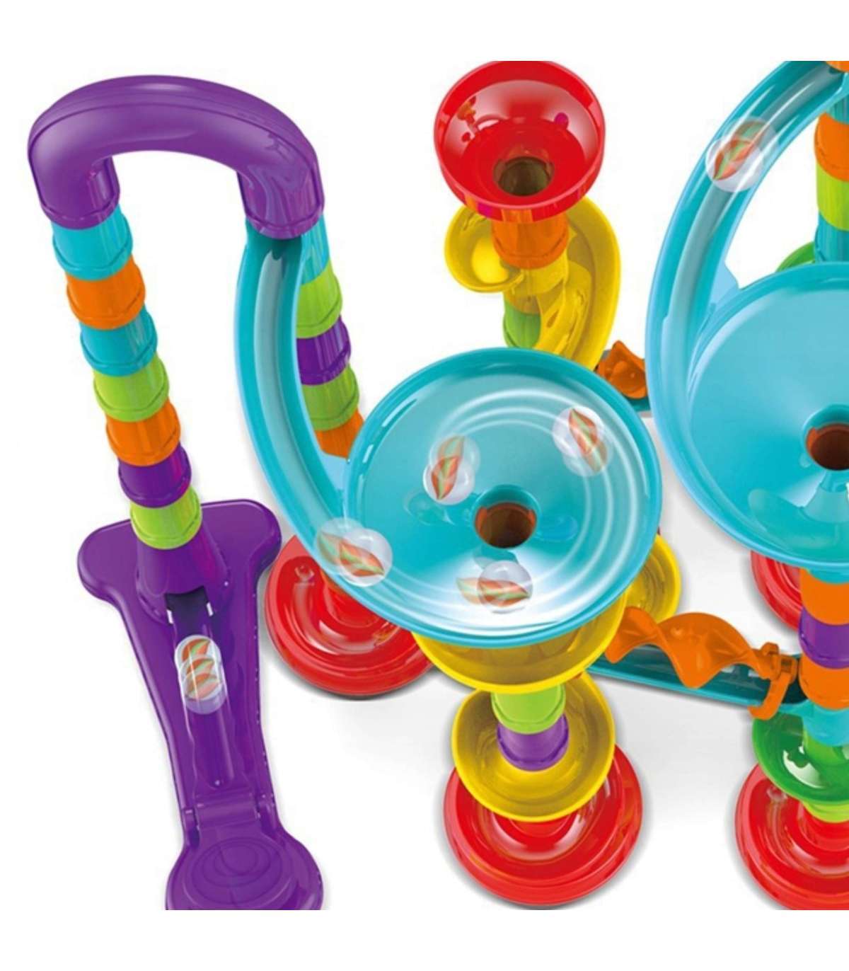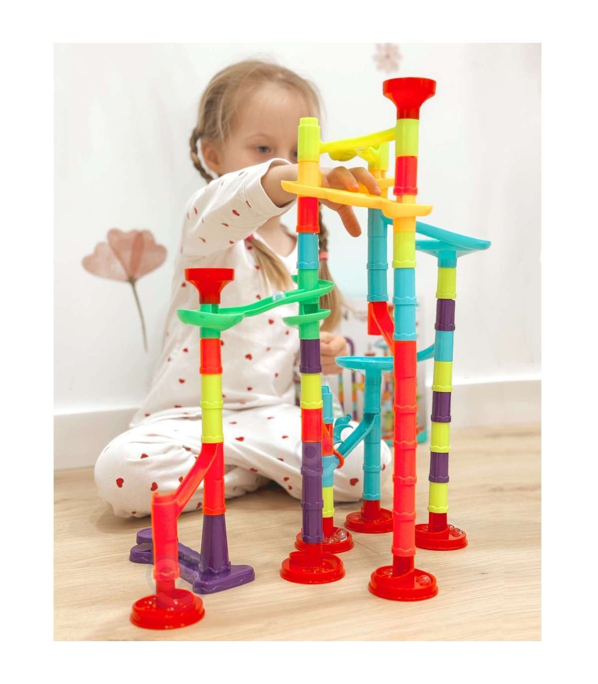 Kulodrom od WOOPIE to spiralny tor zapewniająca niekończącą się zabawę. Ten kolorowy zestaw składa się z wielu różnych kolorowych elementów , które maluch może z łatwością układać jedna na drugiej oraz dowolnie łączyć w wymyślne tory. Dodatkowo z tyłu opakowania znajduję się instrukcja pokazująca przykładowy tor z wykorzystaniem wszystkich elementów. Puszczaj kulki i obserwuj, jak toczą się i huśtają jedna po drugiej. W zestawie jest aż 113 el., w tym np wyrzutnia i kulki do toru. Rozmiar jest odpowiedni dla małych rączek i pomaga rozwijać koordynację wzrokowo-ruchową.