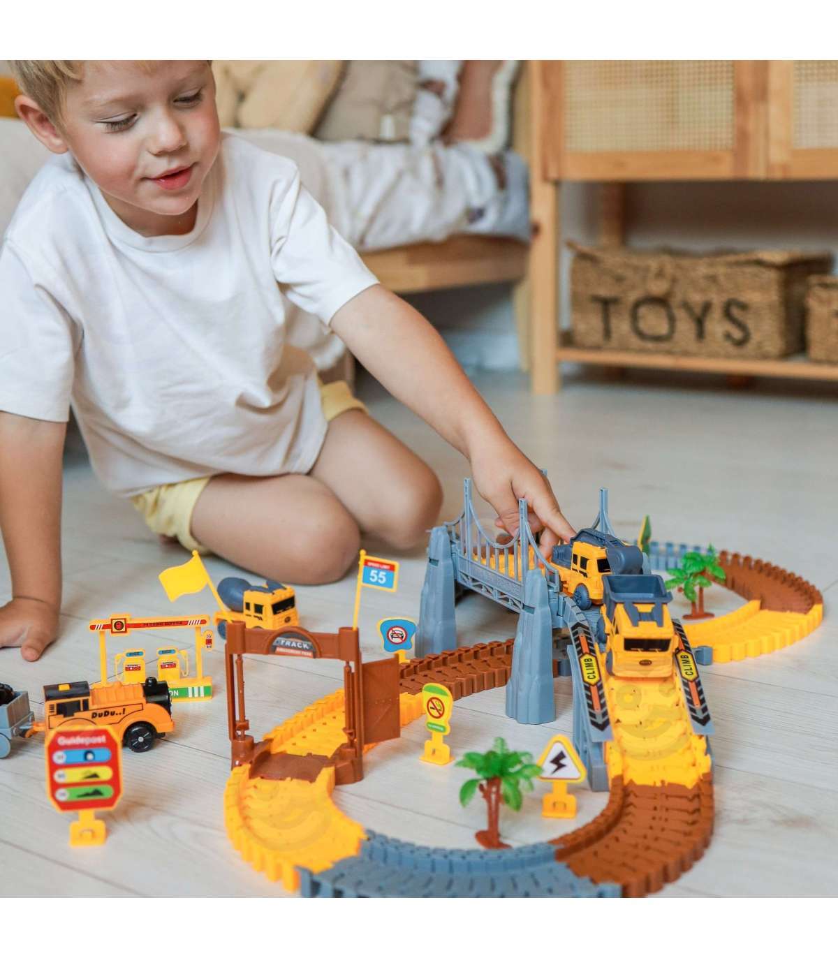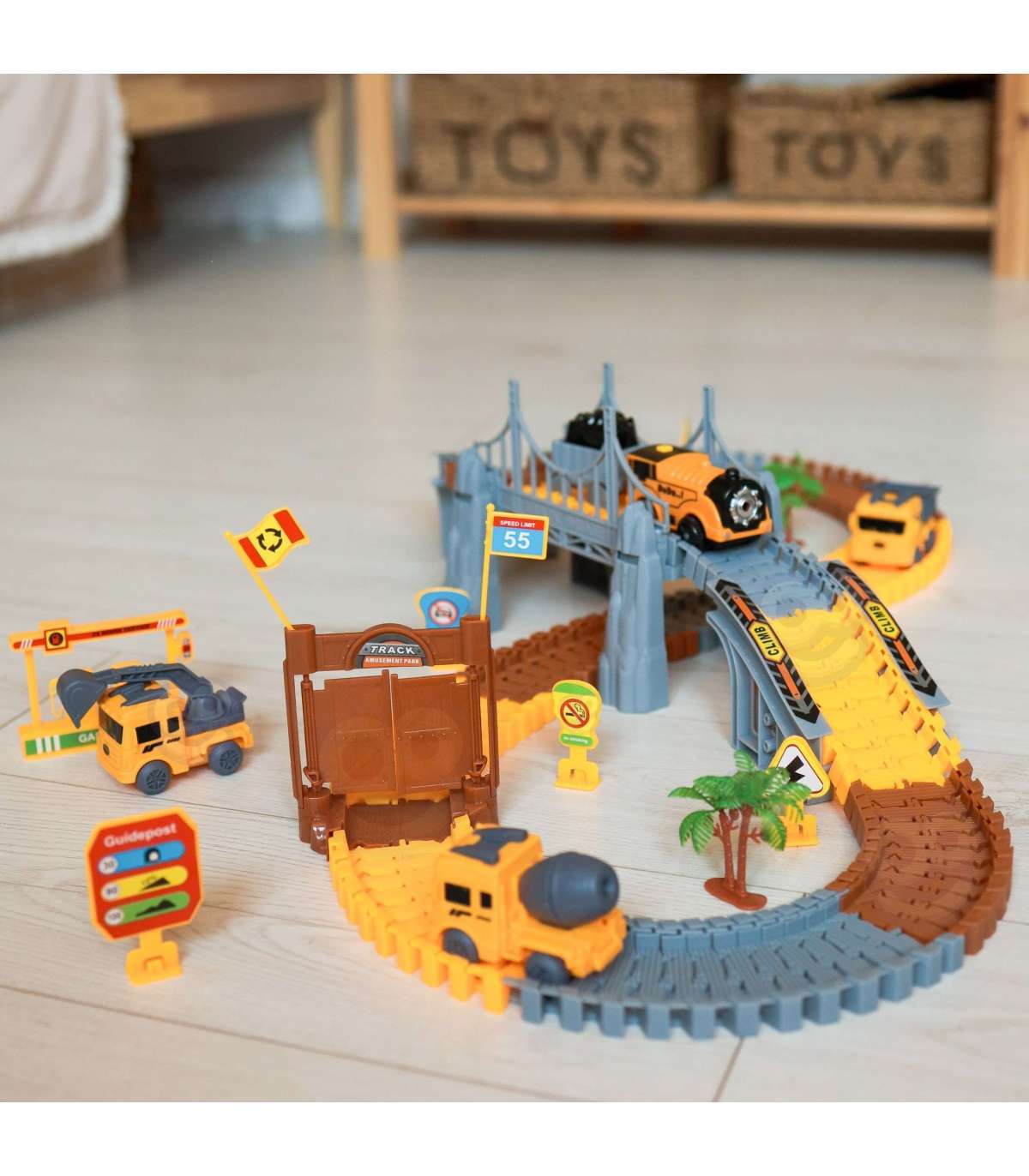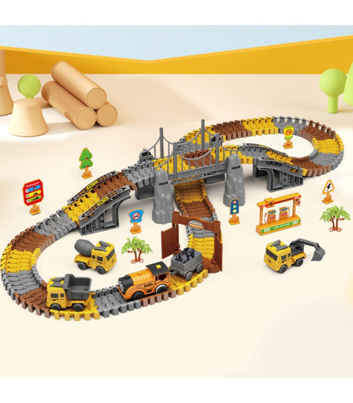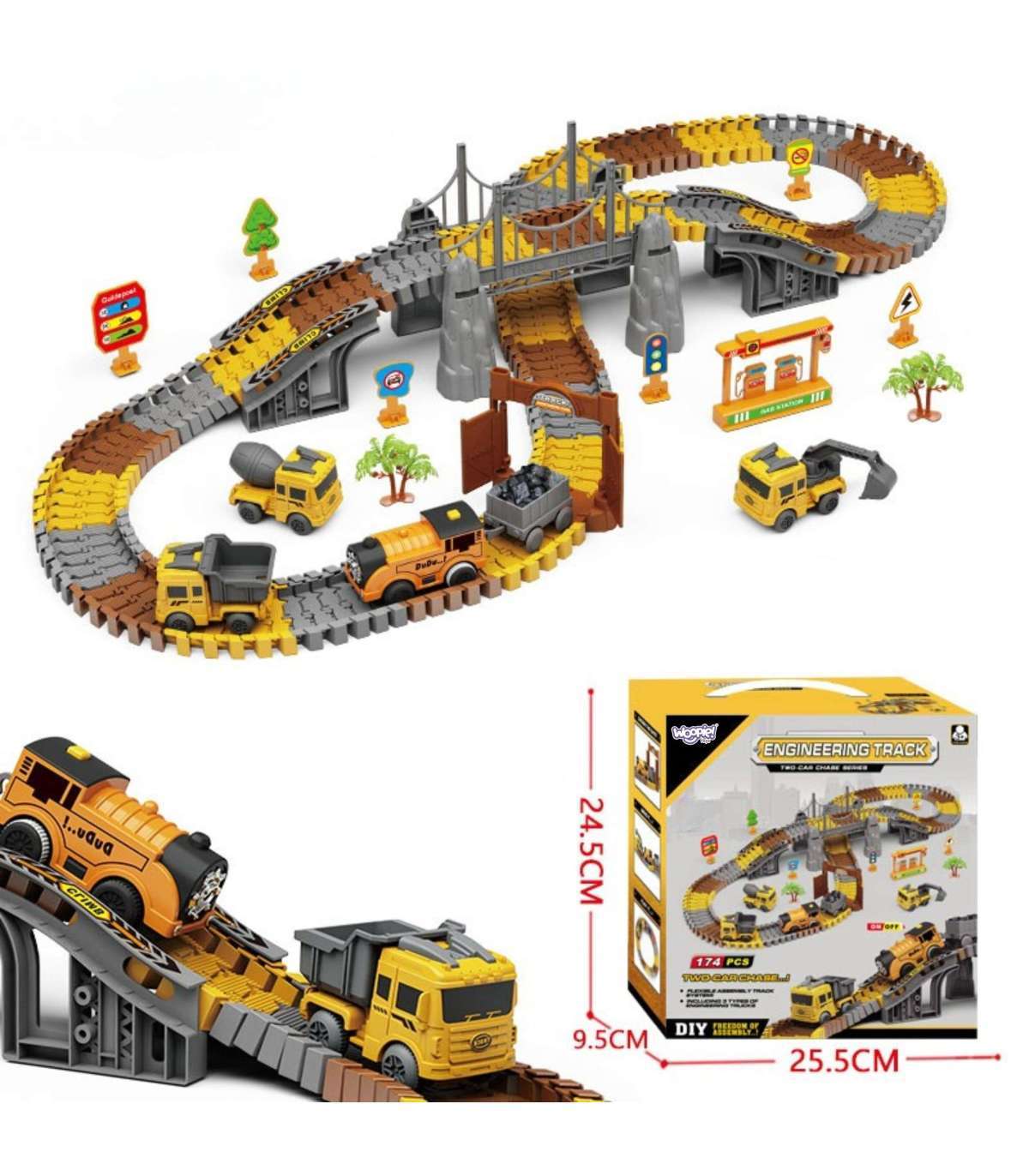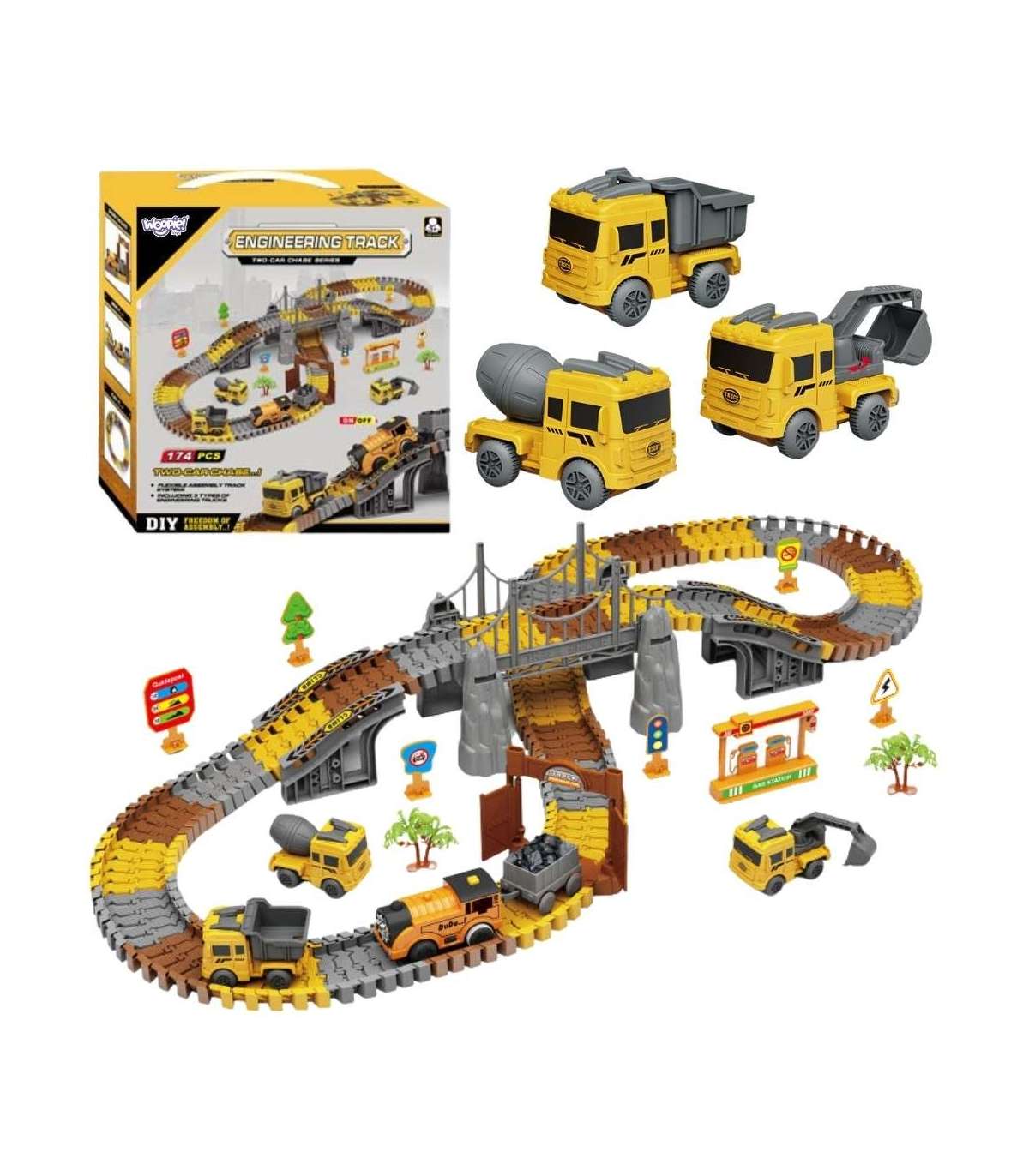 WOOPIE Tor Samochodowy XXL Kolejka Elektryczna Plac Budowy 174 el.