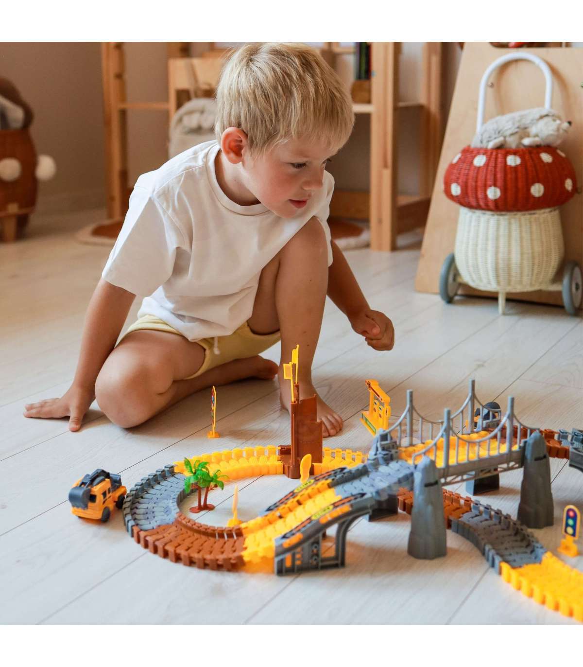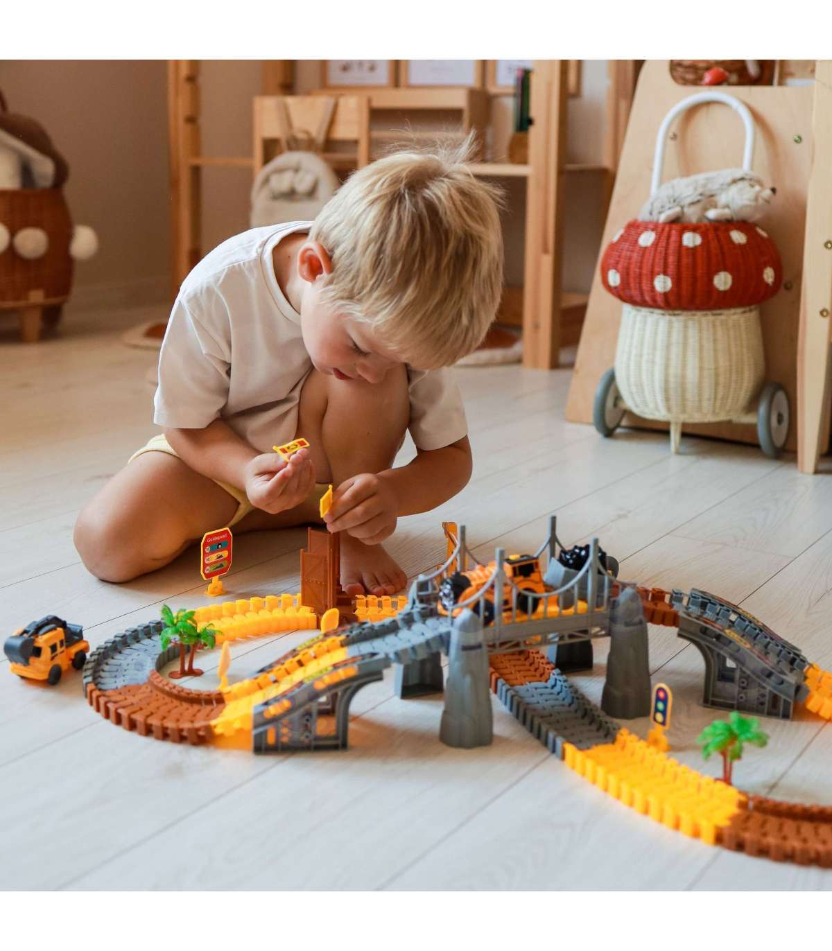 Przenieś się do świata wielkich maszyn i fascynujących budów z Torem Budowlanym od marki Woopie. Ten tor to ogromny, aż 174-elementowy komplet, który przeniesie Twoje dziecko prosto na plac budowy pełen emocjonujących przygód. Zestaw pozwala samodzielnie konstruować rozbudowane trasy z mostami, bramami i zakrętami, a także korzystać z realistycznych pojazdów budowlanych. Dzięki kolorowym elementom i solidnemu wykonaniu zabawka przyciąga wzrok i zachęca do wielogodzinnej, kreatywnej zabawy. To doskonały wybór dla każdego małego inżyniera, który uwielbia budować, planować i odkrywać nowe możliwości!
