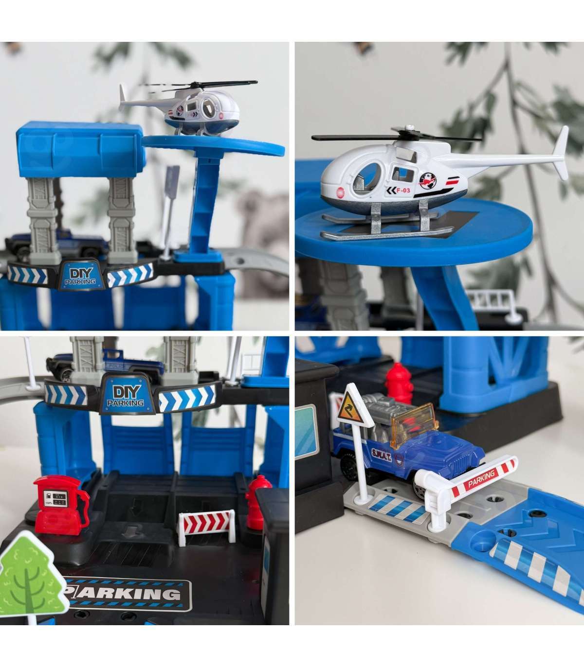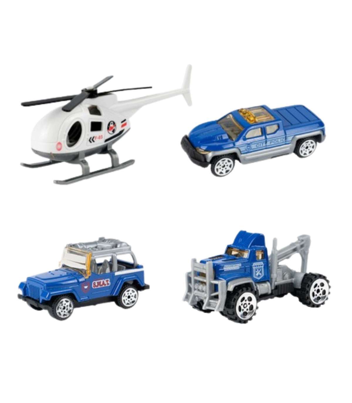 - - W zestawie pojazdy policyjne i helikopter – do odgrywania różnorodnych scenariuszy