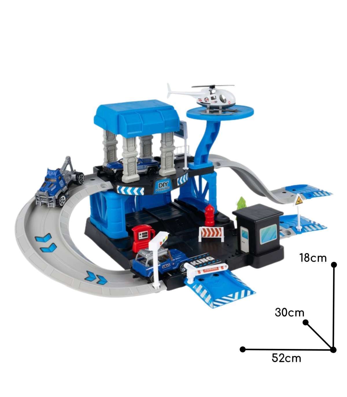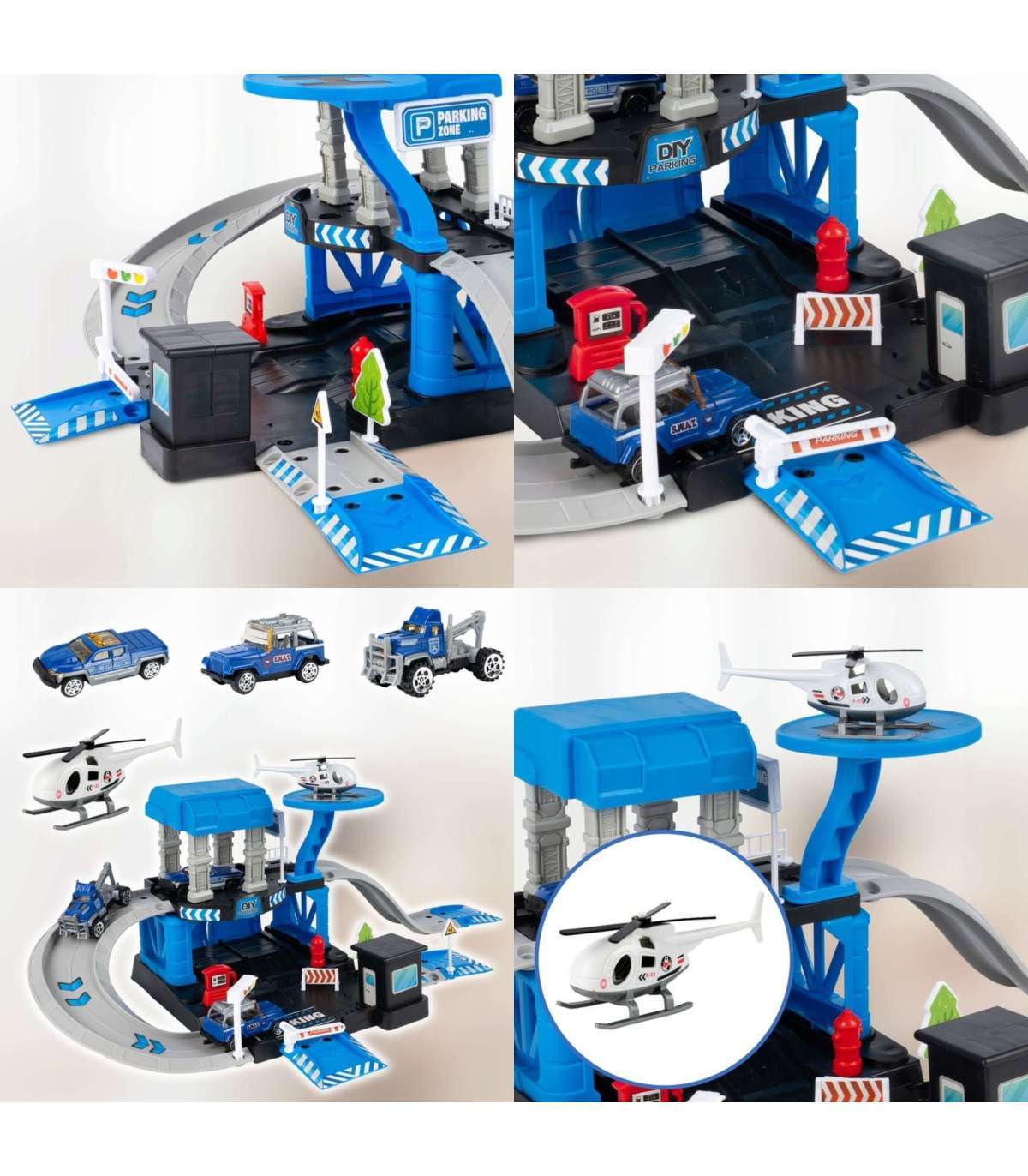- - Dwupoziomowy parking z rampami, zjeżdżalniami i lądowiskiem dla helikoptera