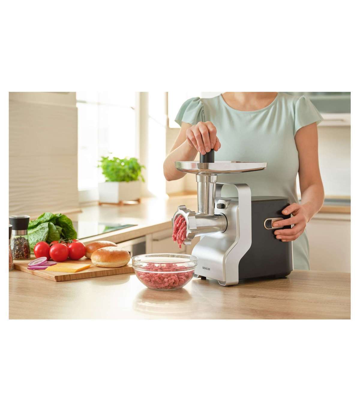 Haki erinevat tüüpi liha kiirelt ja mugavalt hakklihamasinaga. Seadme lõiketera ja kettad on valmistatud vastupidavast terasest, täitealus on alumiiniumist. Komplektis on lisavarustus riivimiseks ning vorsti ja kebabi otsikud. Nimivõimsus 700 W, maks.võimsus 2100 W.