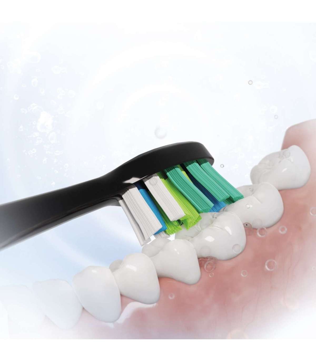 W-kujuline harjapea kahe hamba samaaegseks puhastamiseks. Tänu harjaste erilisele paigutusele kimpudes on hammaste puhastamine palju tõhusam kui tavalise harjapeaga.