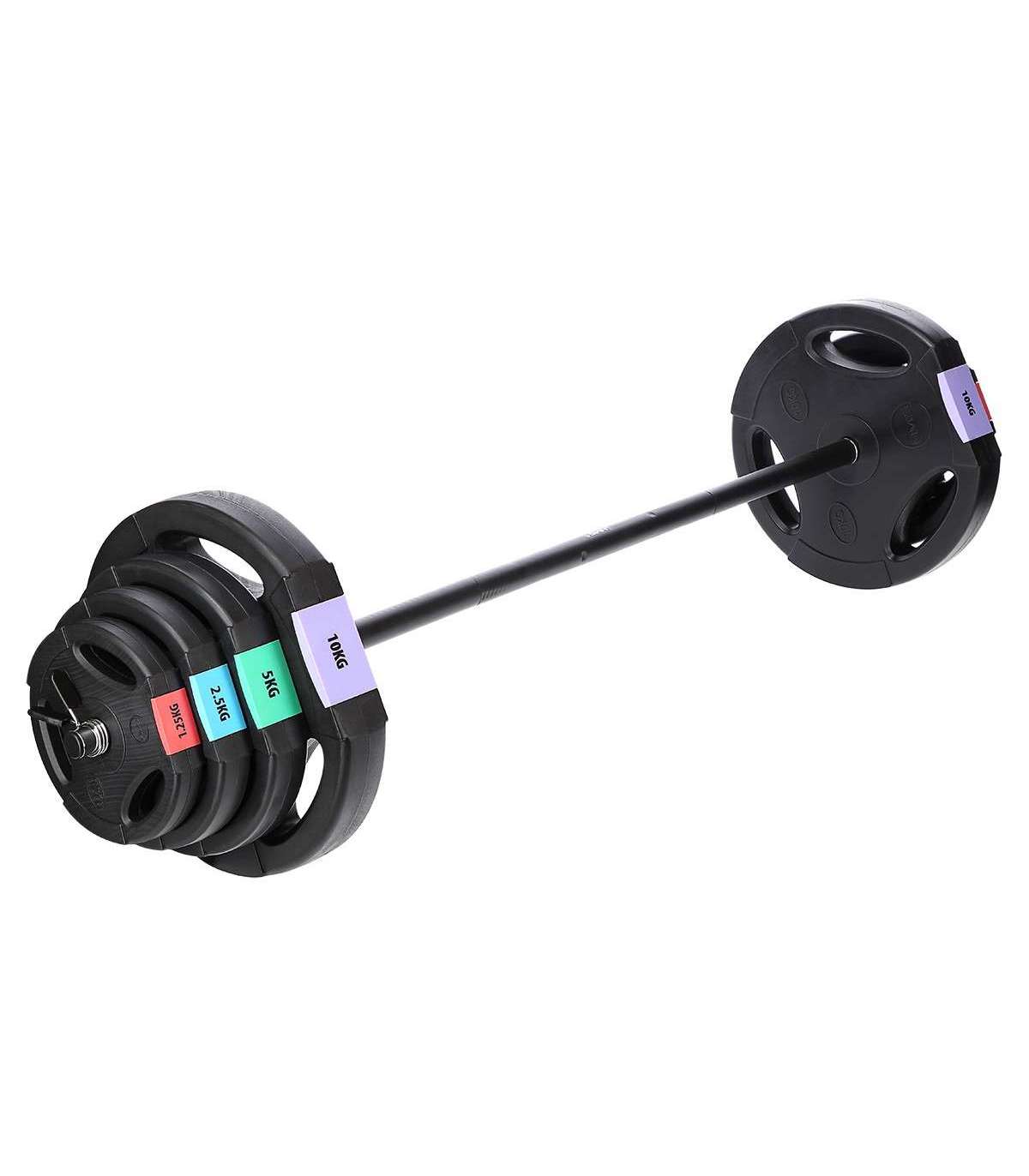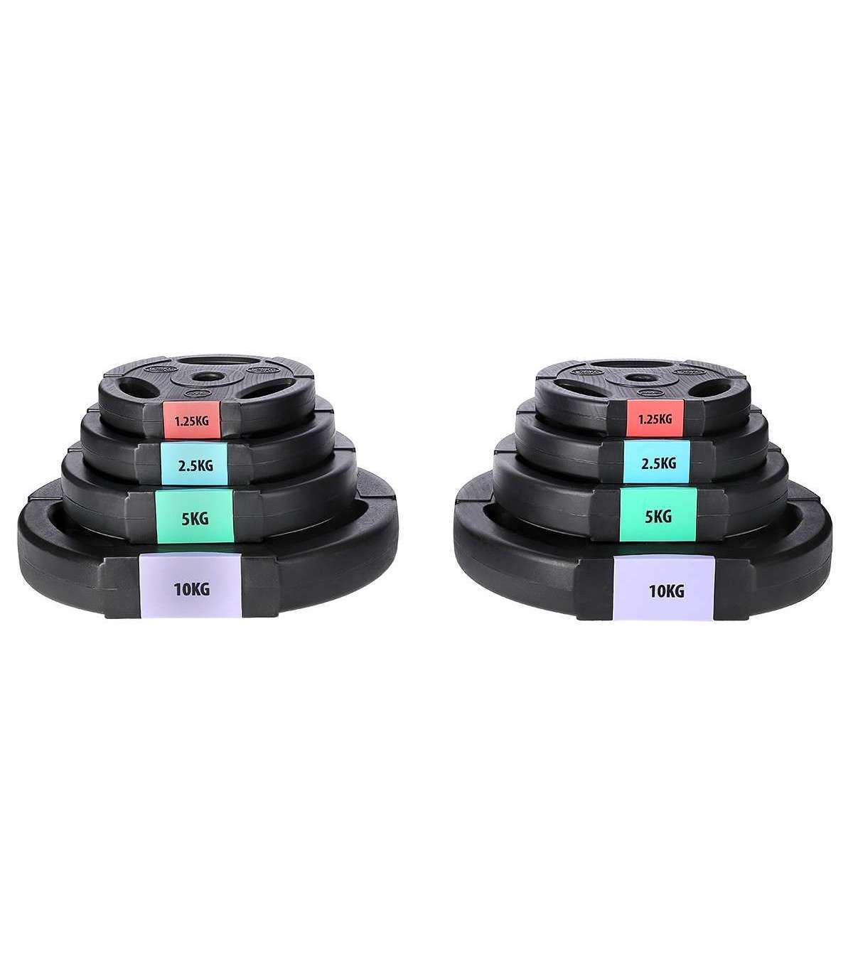 - Komplektis olevate raskuste jaotus: 2x 1.25 kg / 2x 2.5 kg / 2x 5 kg / 2x 10 kg