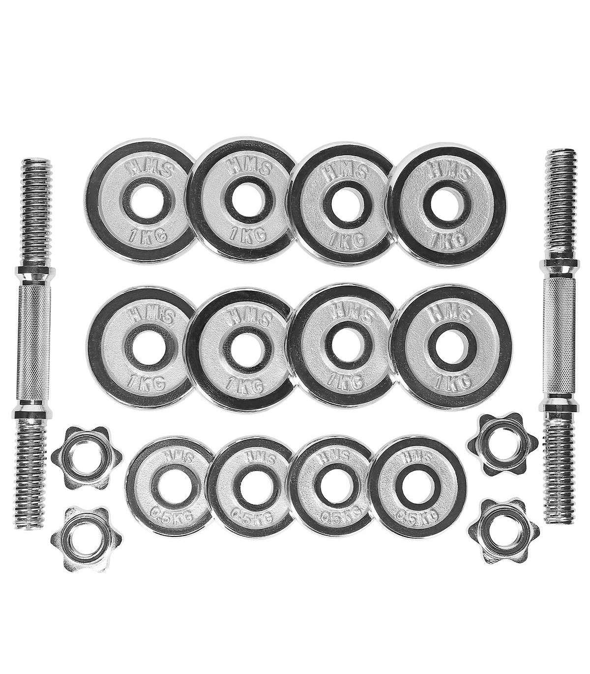 STC15 HMS is a 15kg dumbbells set in a case. The product can be easily moved and it’s also easy to store.The set is made of high quality materials. It includes professional chrome bars with strong star collars. Thanks to threaded bar changing the plates is very quick and simple.Star collars evenly press against the plates. The bar has a grooved handle, so it doesn’t slip during exercise. Set is packed in a practical suitcase for easy transportation.Specification:Bar diameter: 30 mmBar length: 35 cm2 x straight bar 2.5 kg8 x plate 1.0 kg4 x plate 0.5 kgDumbbell weight: 2 x 7.5 kgRemarks:Not for commercial use24 months warrantyImporter: Abisal Ltd. | Poland | 41-807 Zabrze | Pyskowicka Street 17 | e-mail: abisal@abisal.plAbisal Ltd.. declares that the products sold by the company are safe and meet the requirements contained in the Act on General Product Safety of December 12, 2003. (Journal of Laws of December 31, 2003)