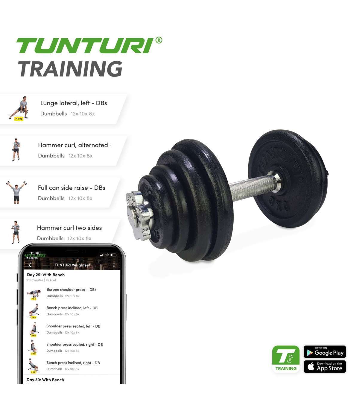 Tunturi hantlikomplekti eelised - Hantlikomplekt - 20 kg. - Must