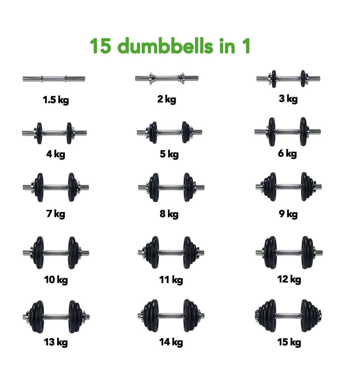Tunturi hantlite komplekti eelised - Hantlite komplekt - 15 kg - Must: