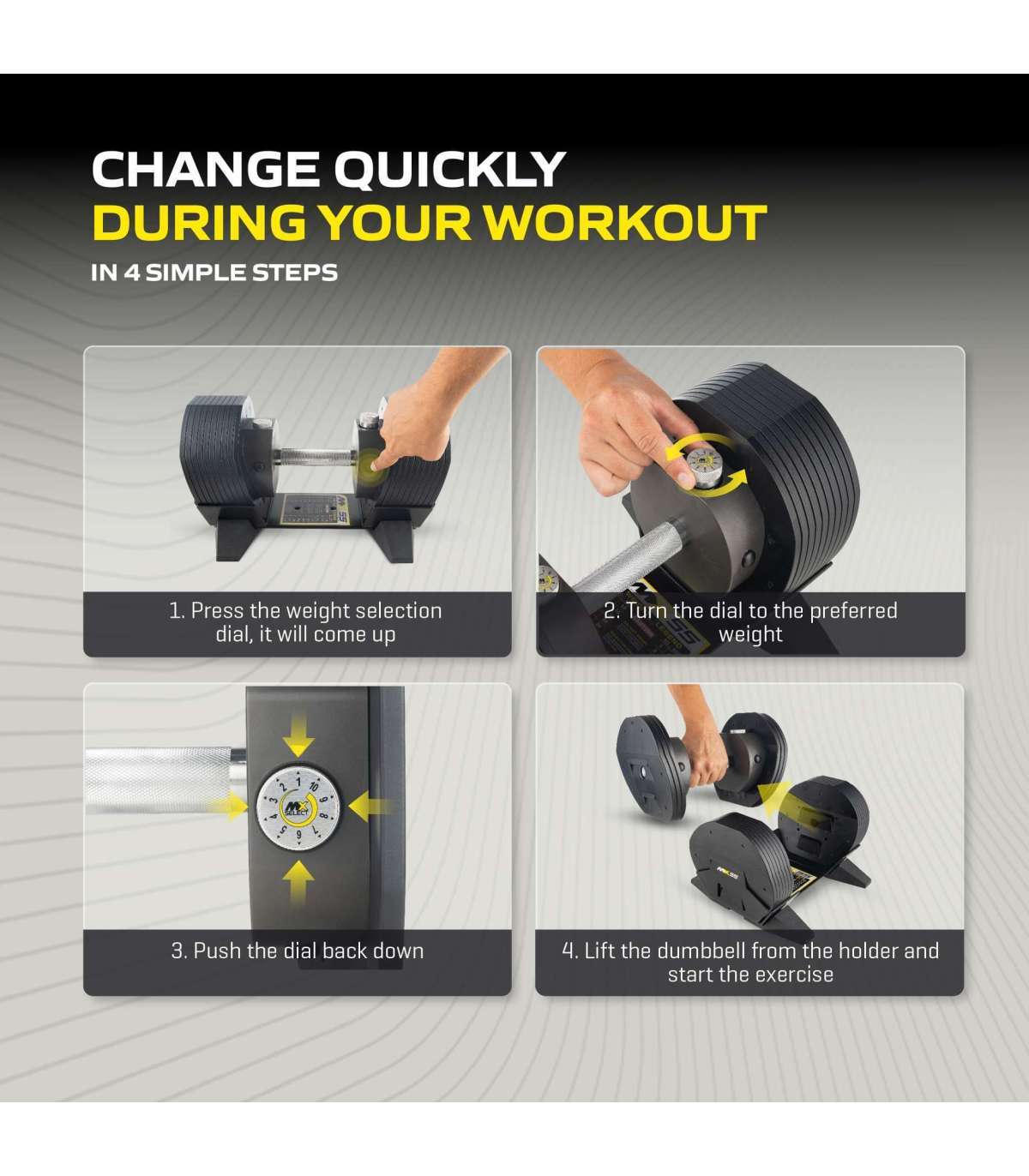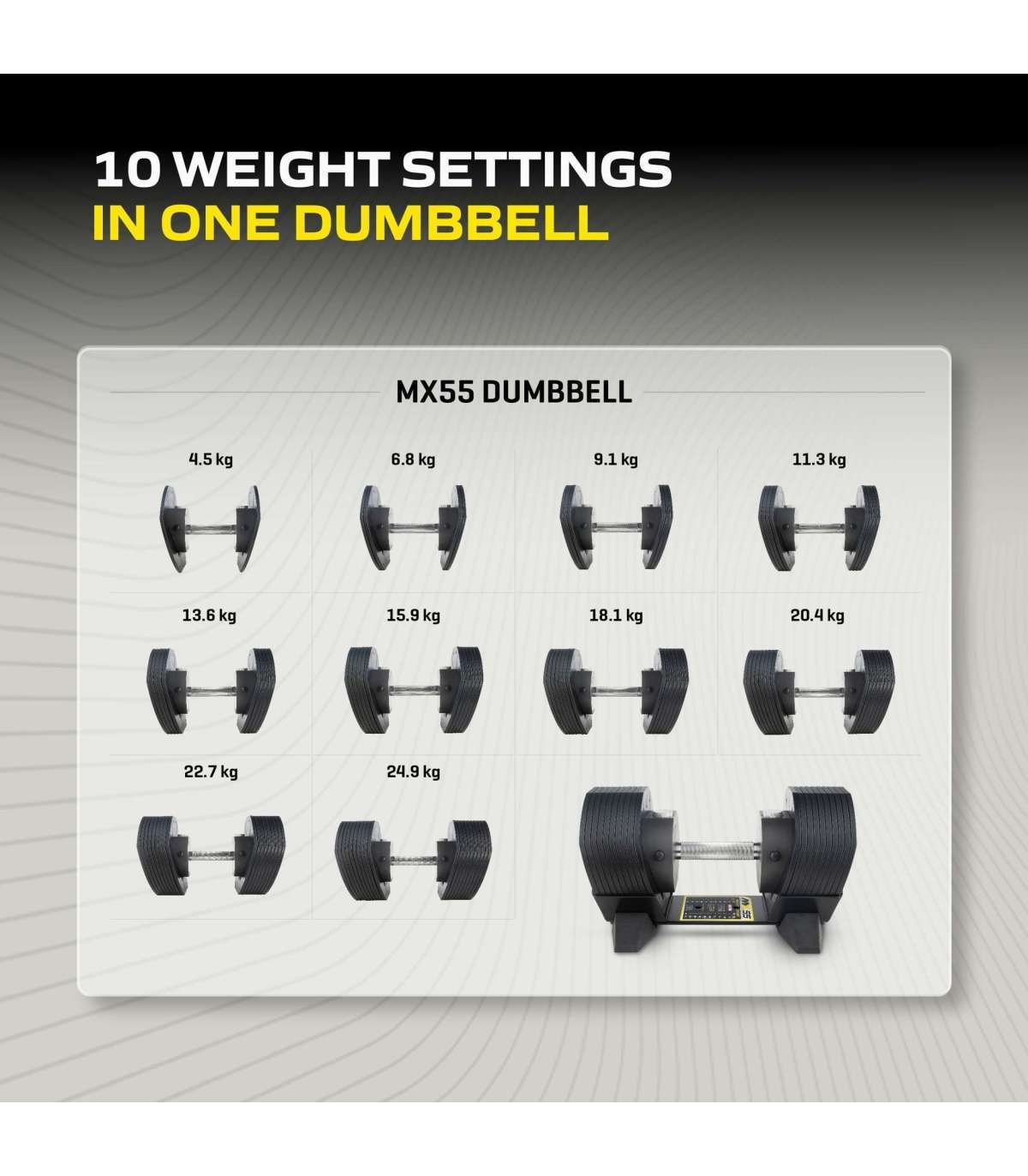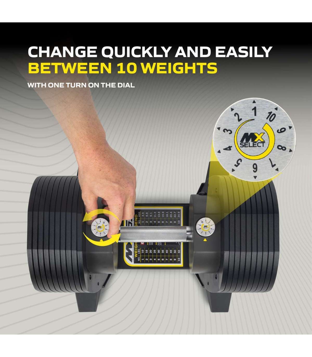 Reguleeritav hantel TUNTURI MX55 Dumbbell 4,5-24,9 kg, knurled
