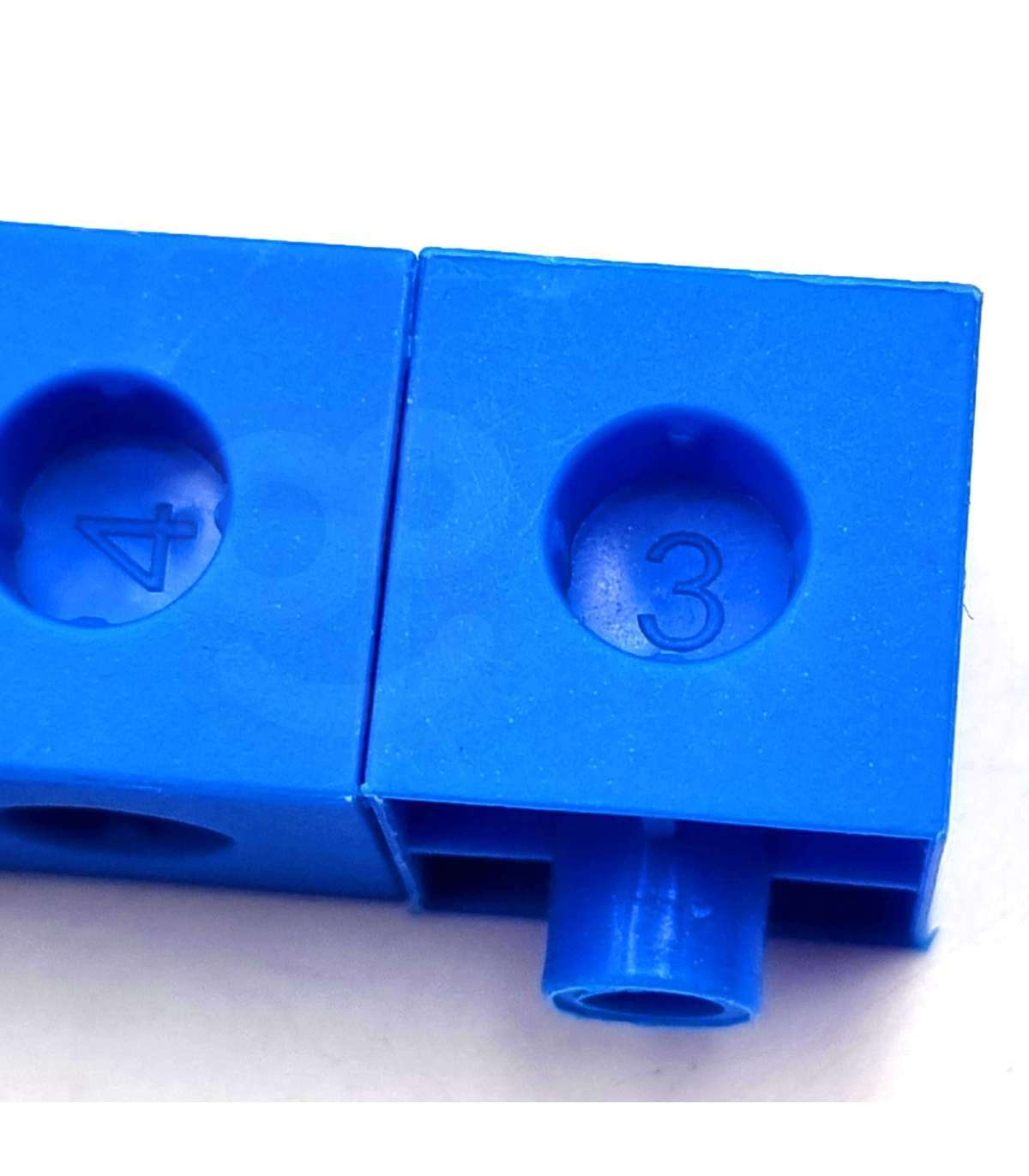 - - każdy klocek posiada na sobie liczbę, która może sugerować kolejność łączenia,