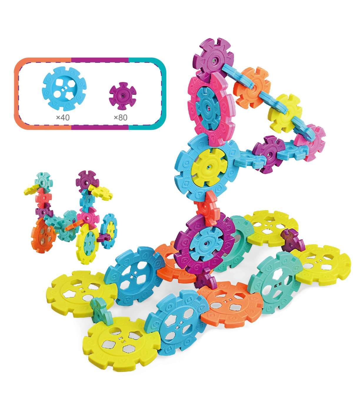 - - zestaw zawiera 120 elementów, w których skład wchodzi 40 dużych i 80 małych klocków,