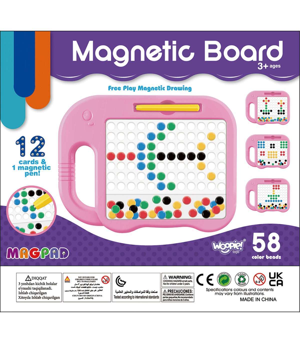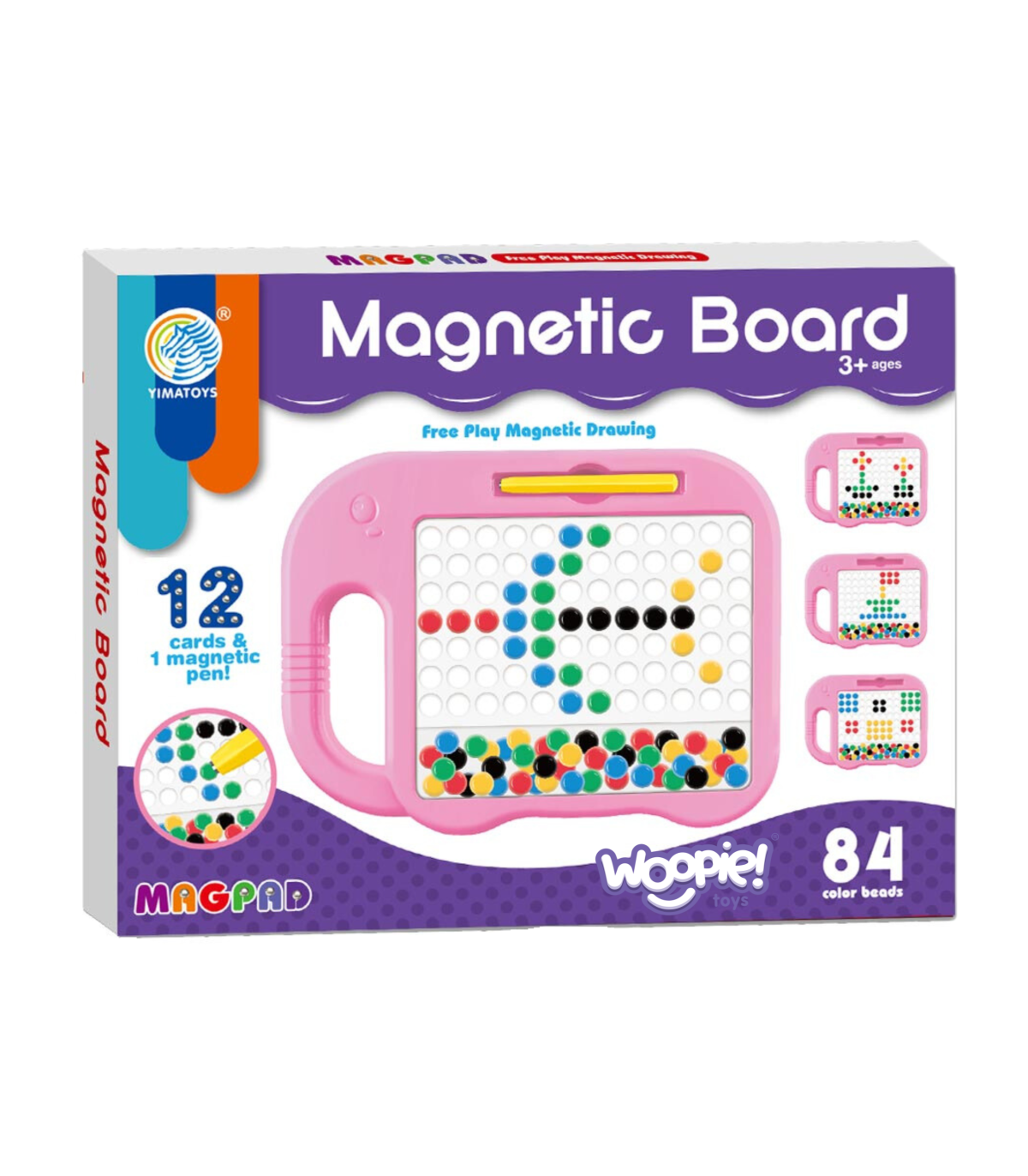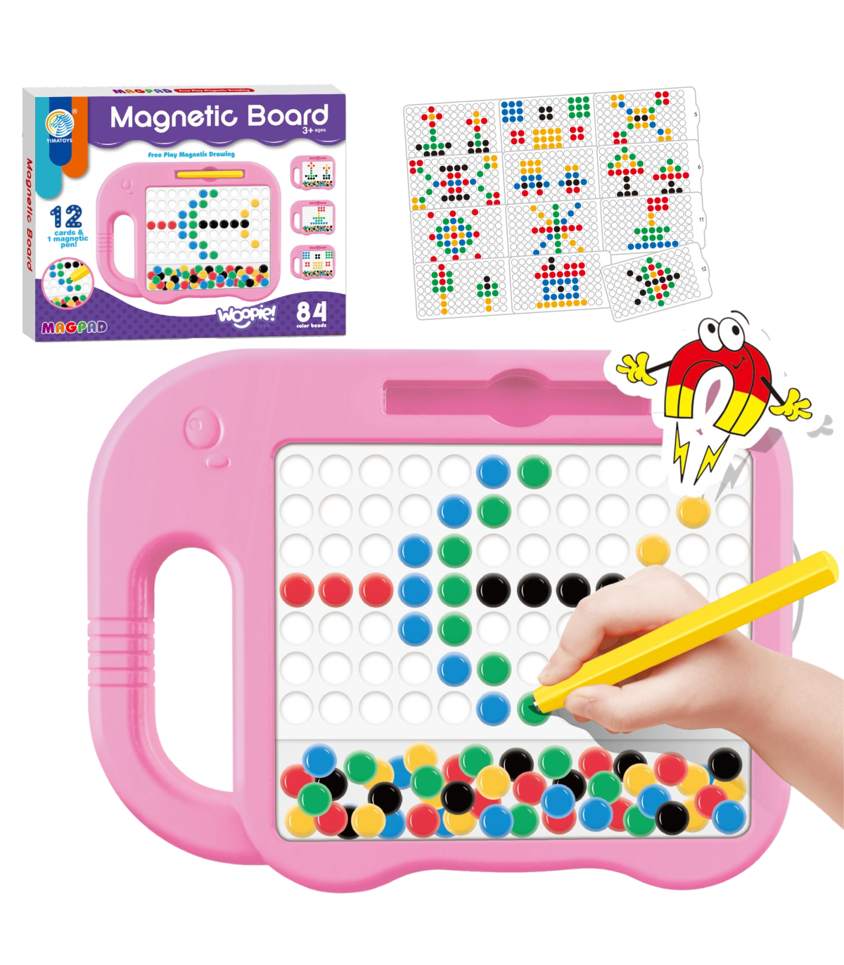 Tablica Magnetyczna MagPad od marki WOOPIE otwiera przed Twoim dzieckiem drzwi do świata kreatywności i edukacji. Dzięki tej wyjątkowej tablicy Twoje dziecko ma okazję tworzyć niepowtarzalne wzory i mozaiki. W skład zestawu, oprócz samej tablicy, wchodzi magnetyczny pisak oraz 84 magnetycznych guzików do tworzenia. Ograniczeniem jest jedynie wyobraźnia i kreatywność - maluch może swobodnie układać wzory według własnych pomysłów. Guziki są mocne i trwałe, a układanie jest intuicyjne i proste. Ten zestaw to nie tylko zabawa, ale też doskonałe narzędzie do nauki i rozwijania zdolności manualnych, koncentracji oraz wyobraźni.