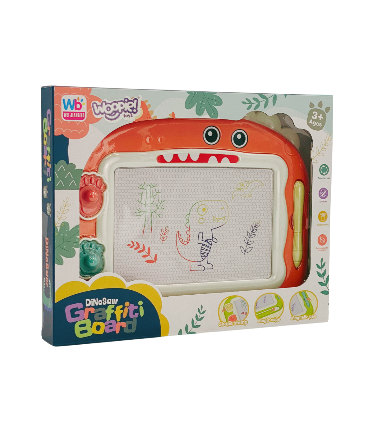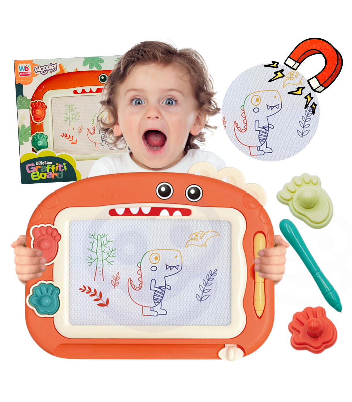 WOOPIE Znikopis Tablica Magnetyczna Kolorowa + 2 Stempelki Dinozaur