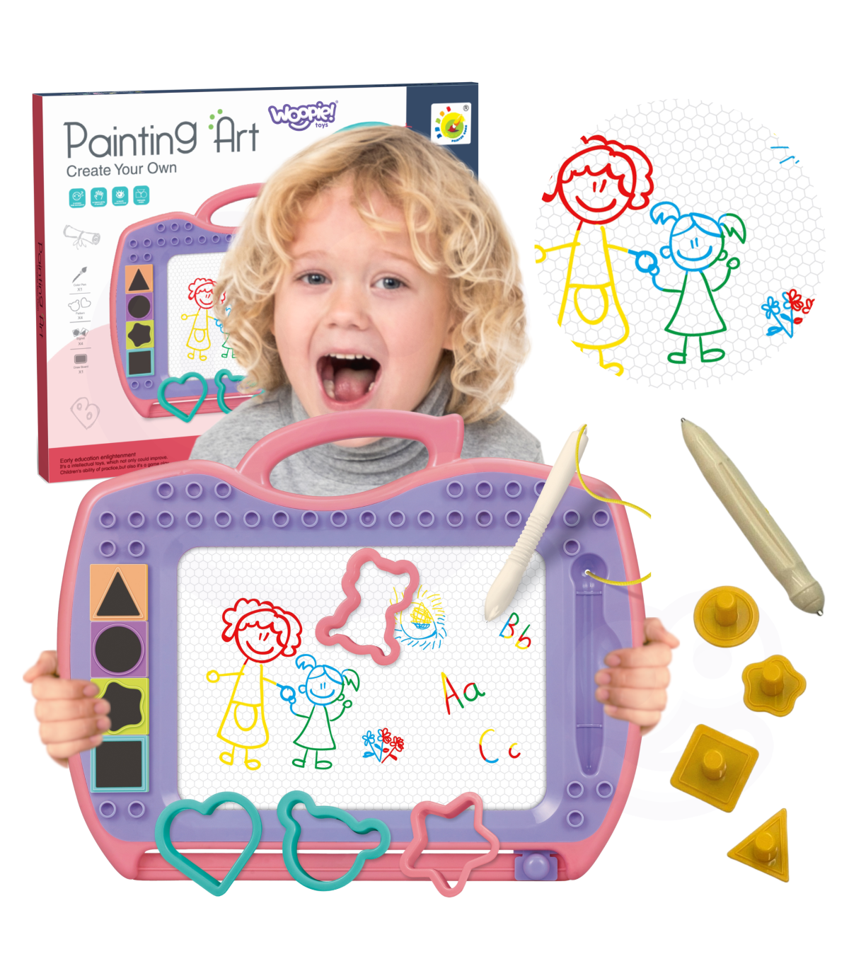 WOOPIE Znikopis Tablica Magnetyczna Kolorowa + Stempelki + Wzory