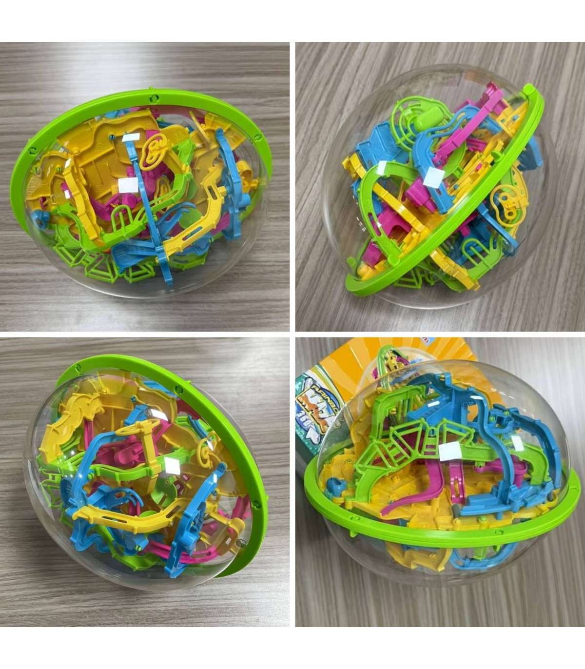 - - Przestrzenny labirynt 3D w przezroczystej kuli z licznymi przeszkodami i zakrętami