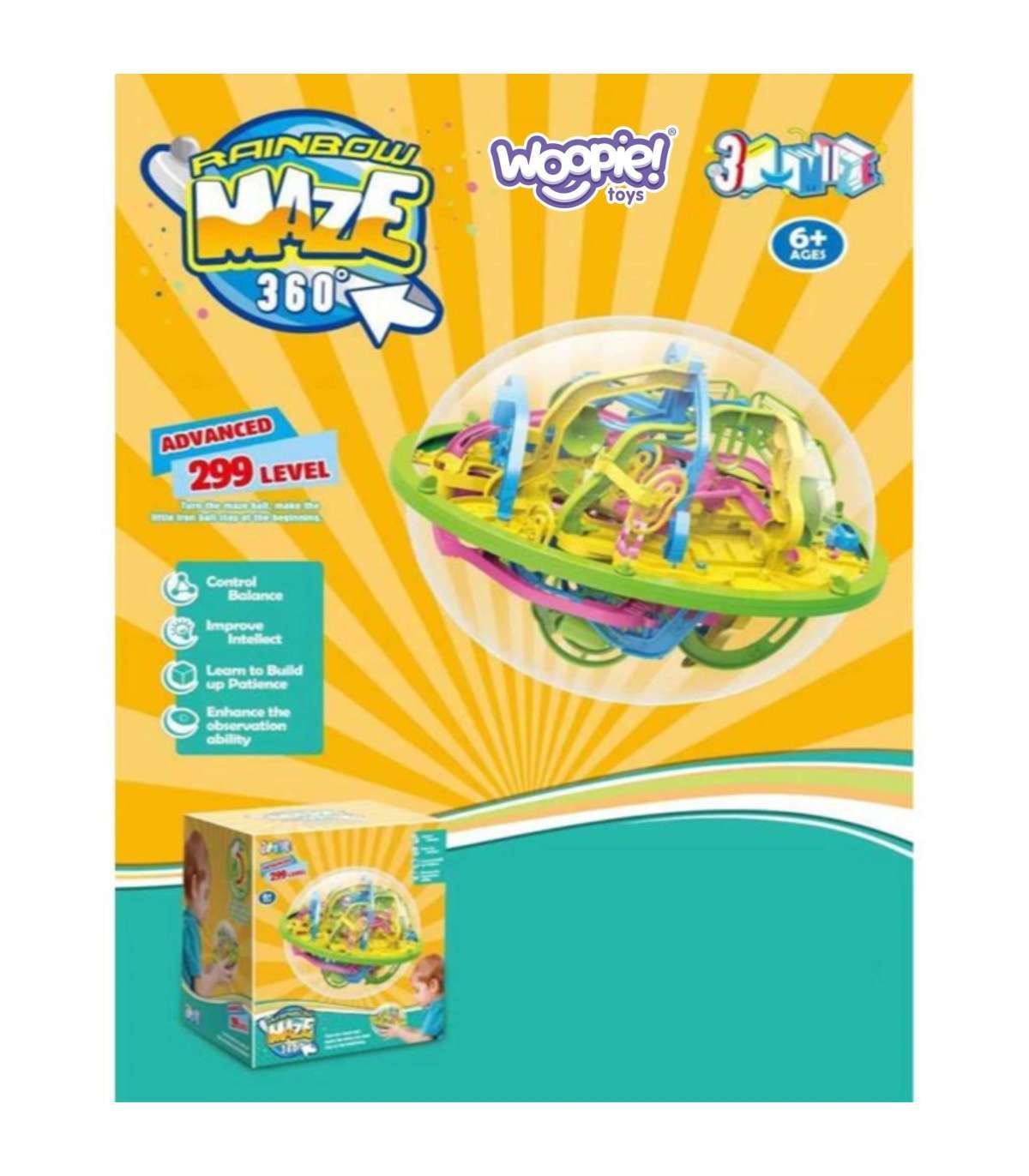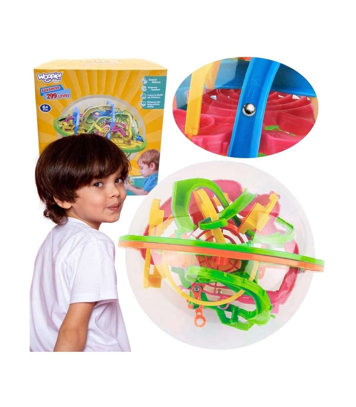 Przenieś zabawę na nowy poziom z przestrzennym labiryntem 3D w przezroczystej kuli marki Woopie. Przeprowadź metalową kulkę po mostach, tunelach i zakrętach niczym rollercoaster! To wciągająca łamigłówka zręcznościowo‑logiczna, która uczy cierpliwości, planowania i precyzji, a kolorowe tory i obracająca się konstrukcja 360° zapewniają długie godziny satysfakcjonującej i wyzywającej zabawy dla dzieci.