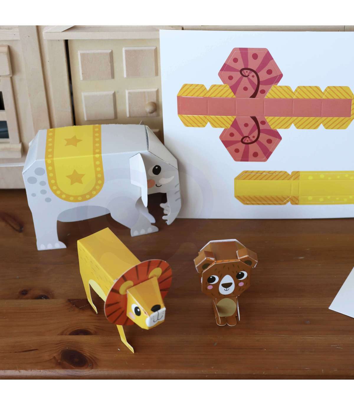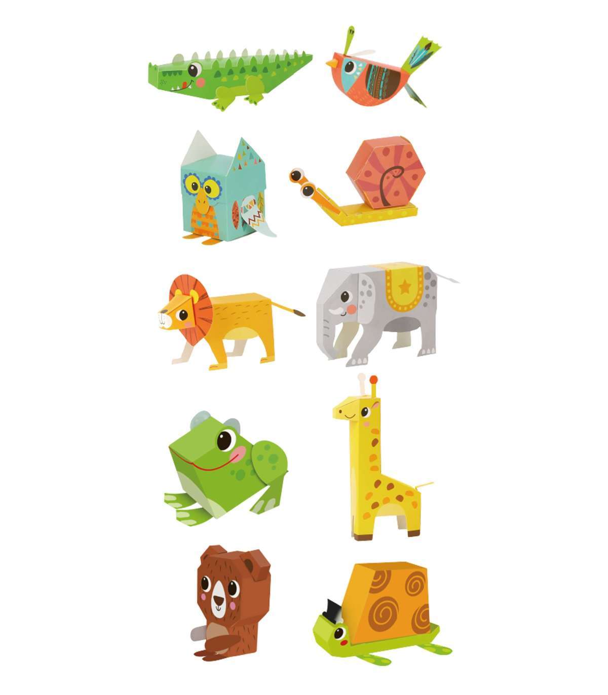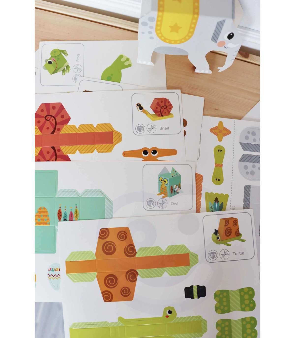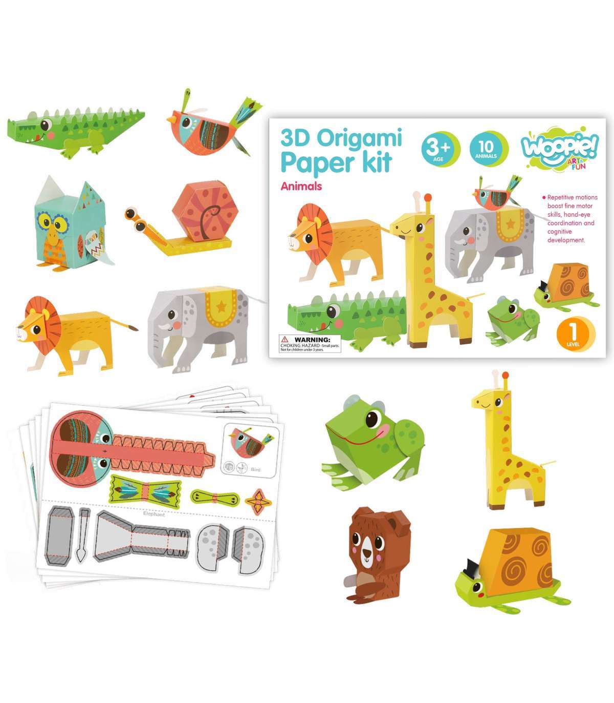 Zwierzątka Origami 3d od marki WOOPIE z serii ART&FUN daje nieskończone możliwości kreatywnej zabawy dla dziecka. Dziecko dzięki temu zestawowi kreatywnemu może stworzyć 10 papierowych zwierzaków origami 3D. Zestaw zawiera 5 kart, na których znajduję się po 2 zwierzaki. Zwierzaki są łatwe do wykonania wystarczy trochę zręczności i kleju. Nie potrzeba nożyczek, ponieważ elementy można łatwo wydzielić za pomocą rąk. Zwierzątkami dodatkowo można zachęcić dziecko do nauki angielskich nazw zwierząt. Zabawka rozwinie zdolności manualne dziecka tzw. "małą motorykę", koncentracje oraz wyobraźnie i kreatywność dziecka.
