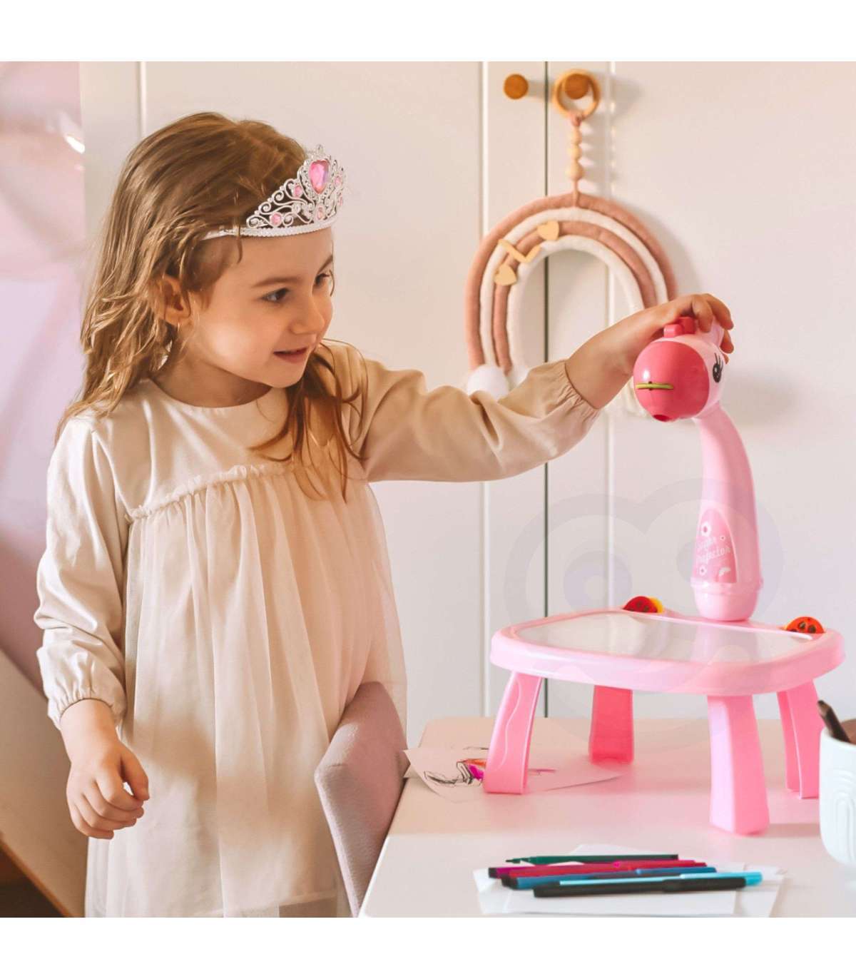 WOOPIE Tablica do Rysowania Projektor Różowa Żyrafa + Flamastry