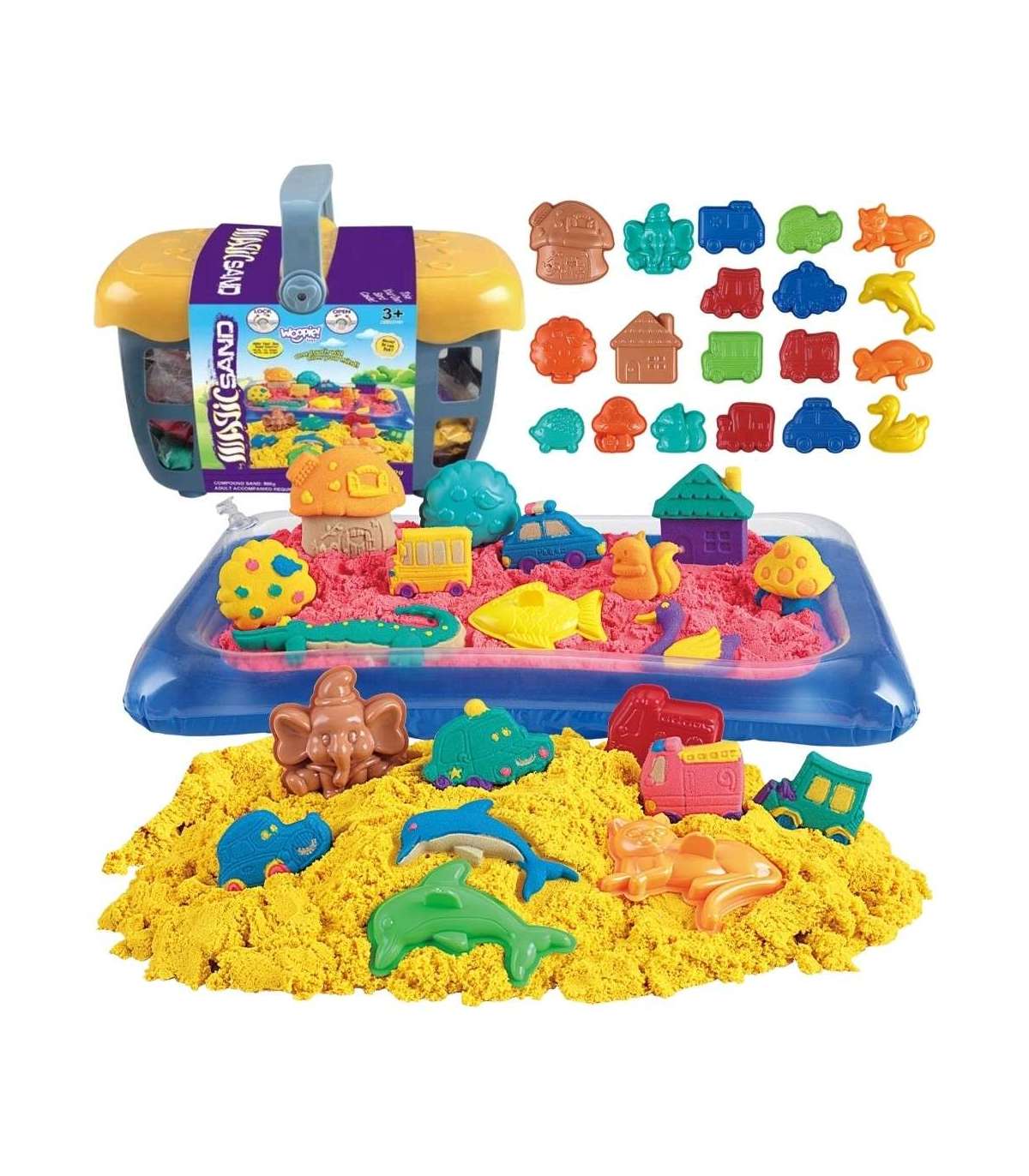 Przenieś plażę do swojego domu, bez piasku roznoszącego się po całym mieszkaniu! Przedstawiamy Magiczny Piasek Kinetyczny w praktycznym koszyku od marki Woopie! Idealny zestaw do kreatywnej i sensorycznej zabawy dla dzieci. Ten niezwykły piasek nigdy nie wysycha, jest miękki w dotyku i łatwo się formuje, co pozwala na tworzenie niezliczonych kształtów i budowli. Dzięki bogactwu foremek i akcesoriów, Twoje dziecko będzie mogło rozwijać wyobraźnię i zdolności manualne, czerpiąc radość z czystej i bezpiecznej zabawy!